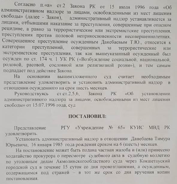 При этом брат осуждённого Марат Данебаев написал в соцсети, что активист получил дополнительный срок в шесть месяцев.