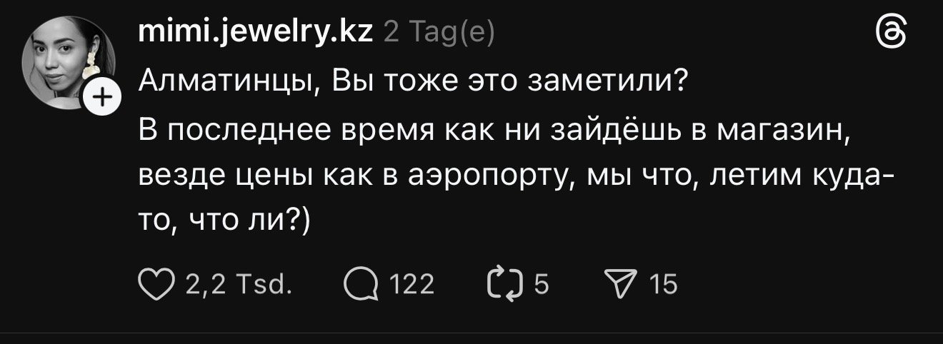 Тем временем в Threads разошёлся пост девушки из Алматы: