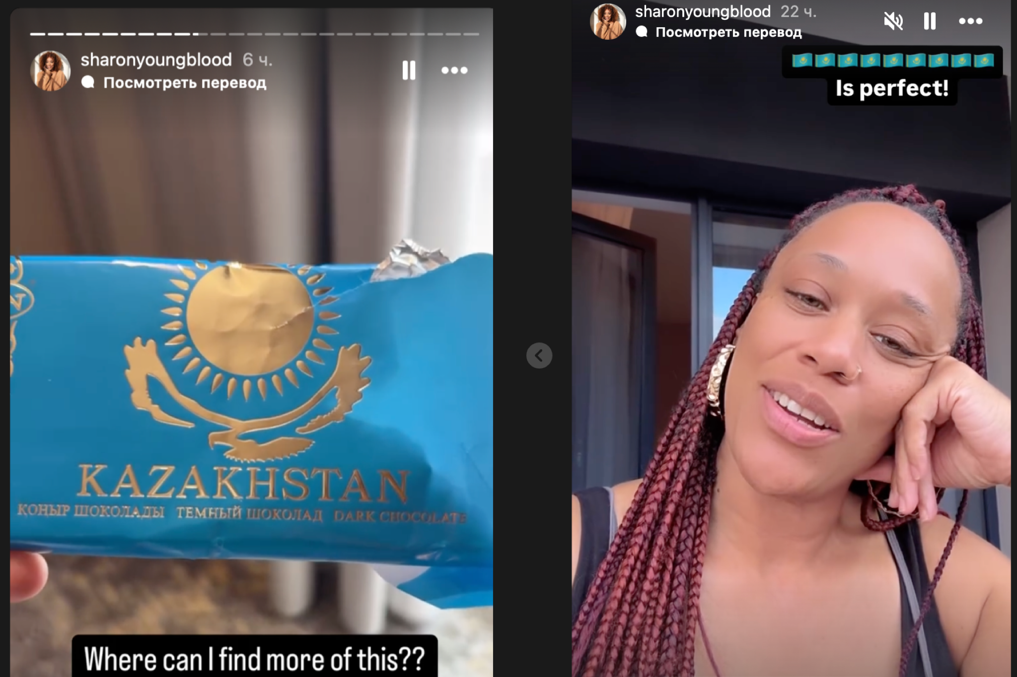 В преддверии шоу в Алматы случилась и своя «сладкая» история. Американская певица Шэрон, участница команды Дженнифер Лопес, опубликовала в инстаграме сторис с плиткой тёмного шоколада Kazakhstan в синей упаковке с национальной символикой, подписав: