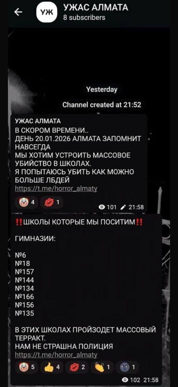 - Анонимные каналы пугают алматинцев готовящимися терактами