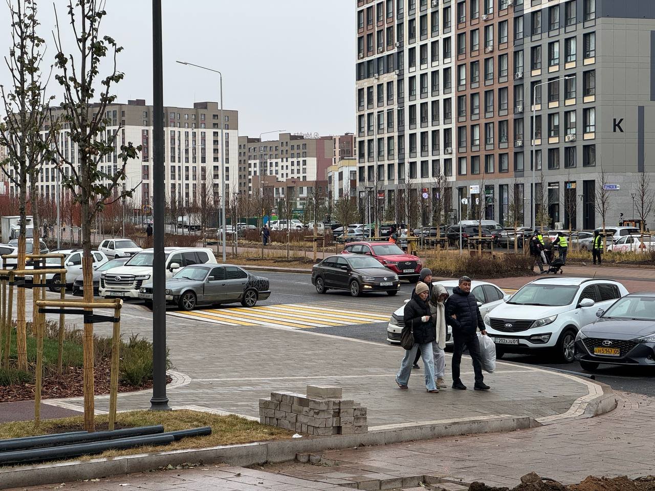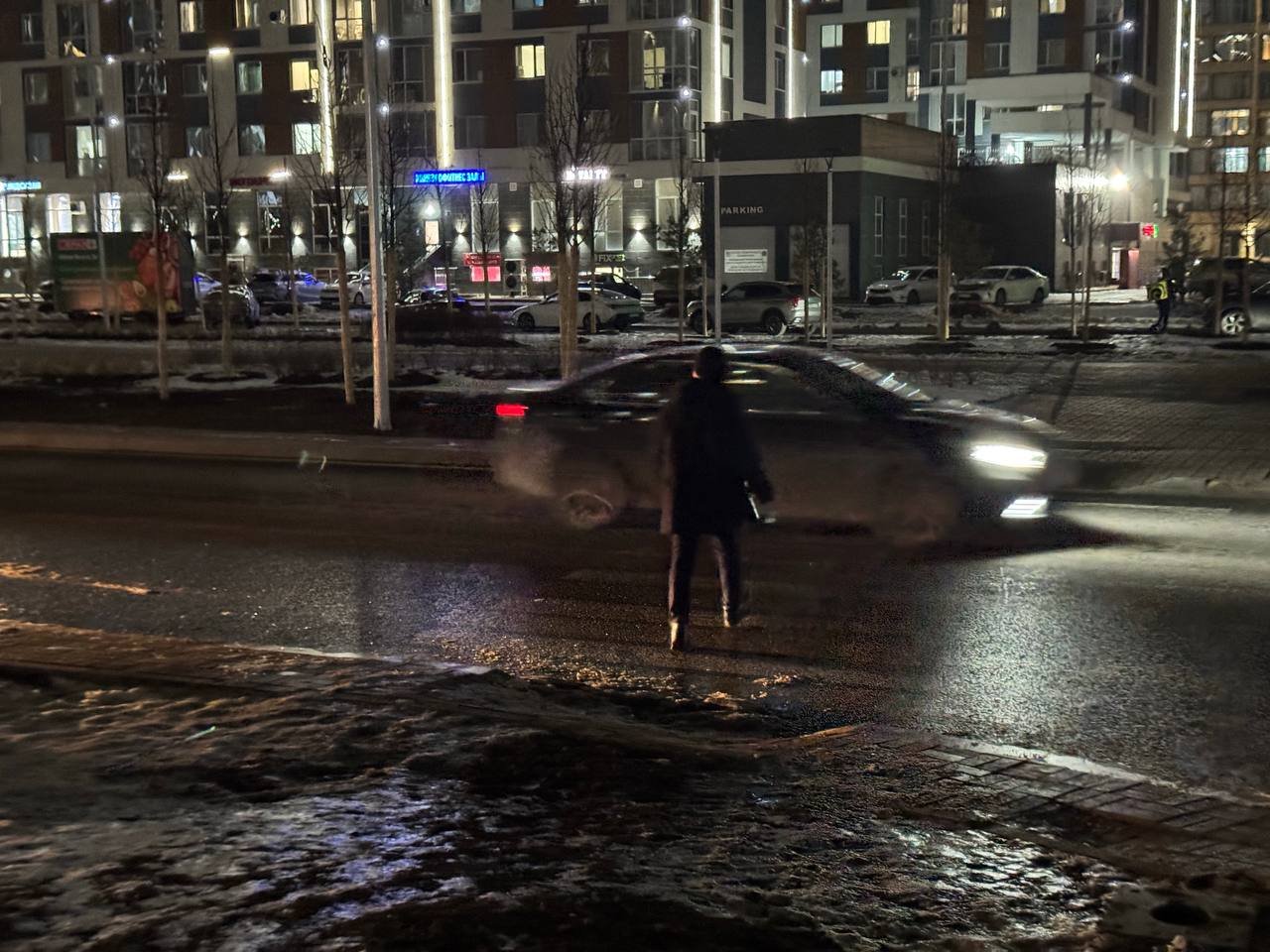 Этот район — один из самых густонаселённых в городе, тут недавно открыли детский сад и школу, а новое общественное пространство логично притягивает больше людей, поэтому авария — дело времени. Жители неоднократно жаловались через eOtinish, но у местных властей для них один ответ — ждите. По проекту благоустройства тут будут и светофоры, и освещение, их установят до конца года. То есть власти не собираются забрасывать ситуацию, но решение проблемы затягивается строительными процедурами. Освещением занимается акимат, а светофорами, лежачими полицейскими и безопасностью в целом — полиция.