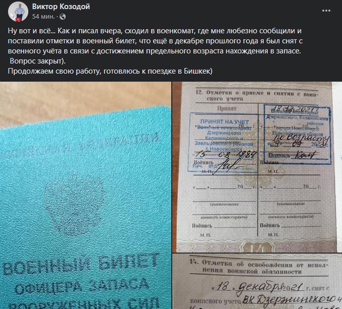 Он выложил фото с военным билетом офицера запаса и коротко написал: «завтра в военкомат...». Под фотографией пользователи оставили множество сочувствующих комментариев. Жители Казахстана и Кыргызстана просили писателя не ходить в комиссариат, а приезжать погостить в гости, как минимум на год. Сегодня выяснилось, что тревога оказалась ложной.