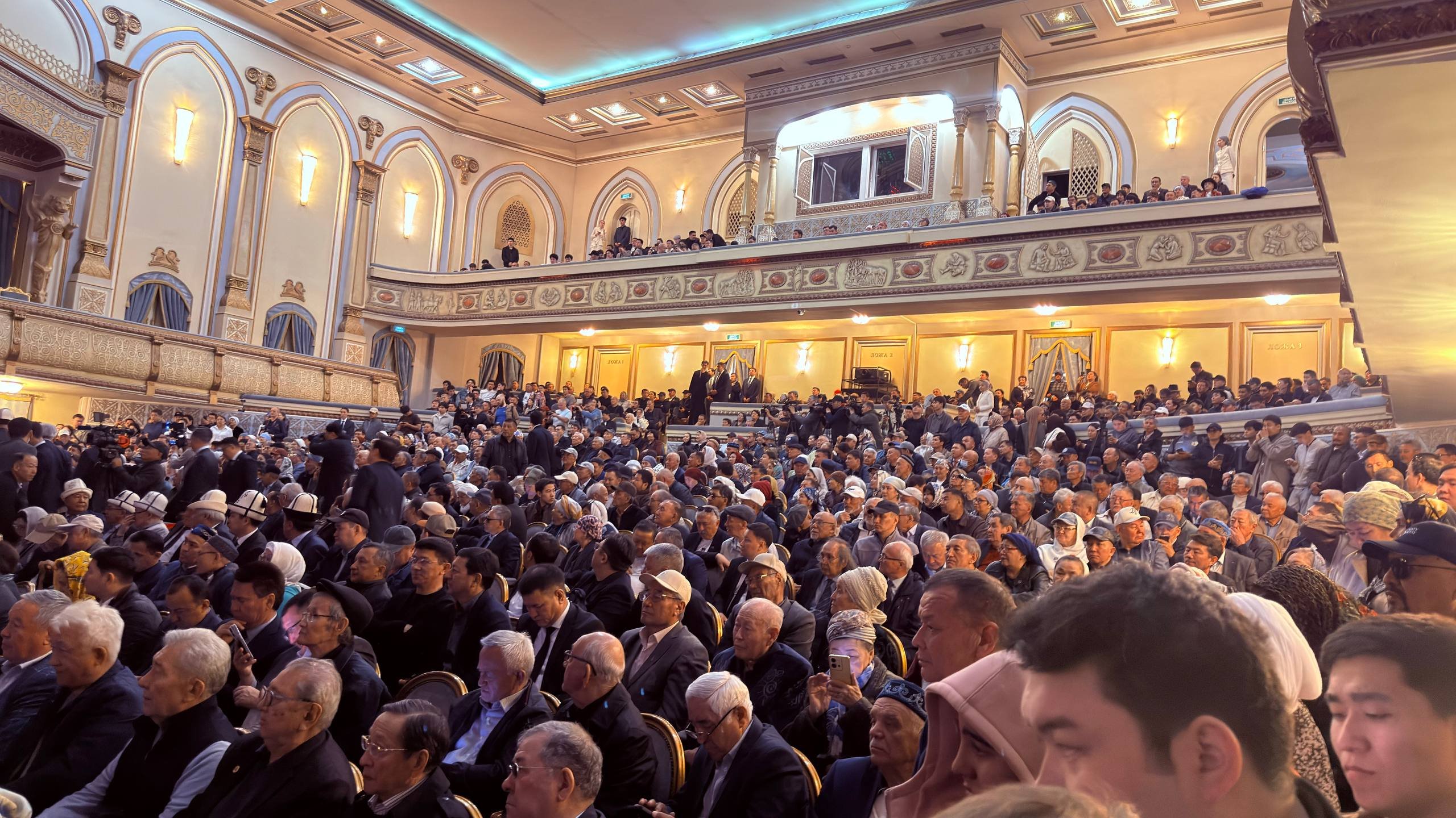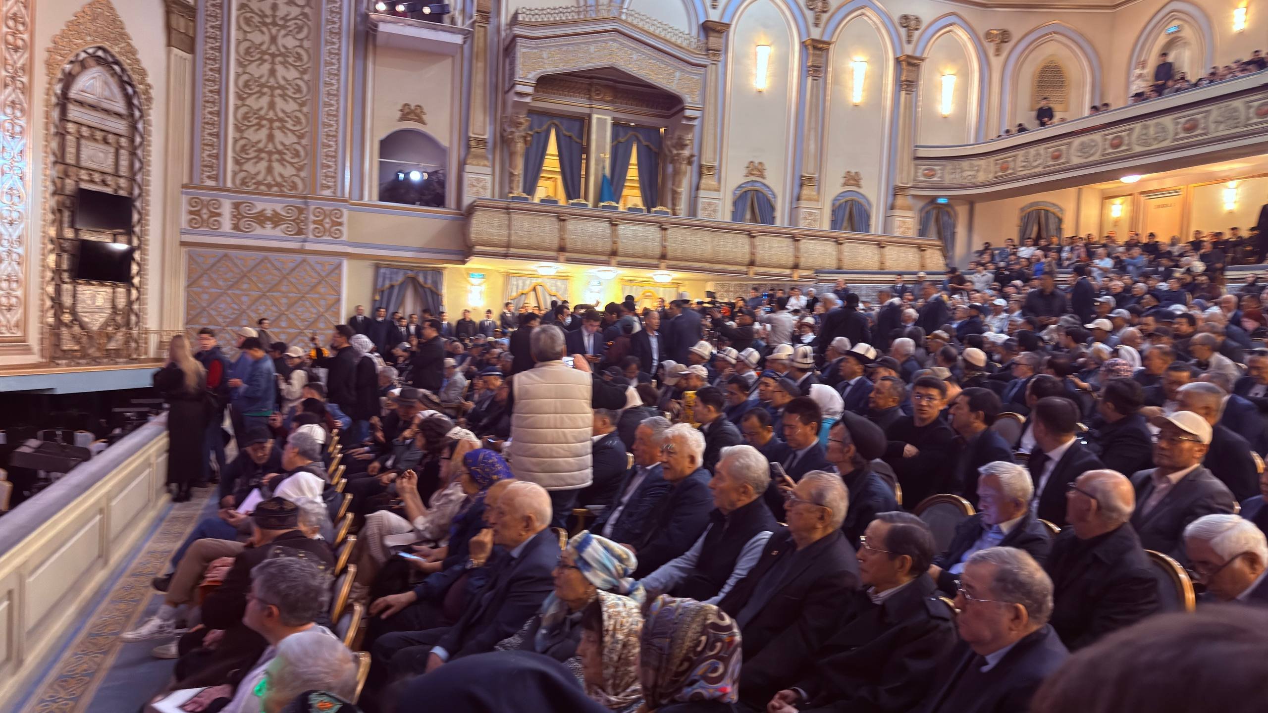В казахский национальный театр оперы и балета имени Абая с утра пришли множество людей — только в зале их собралось более трёх сотен. Среди них политики, общественные деятели, представители интеллигенции, коллеги и читатели поэта.
