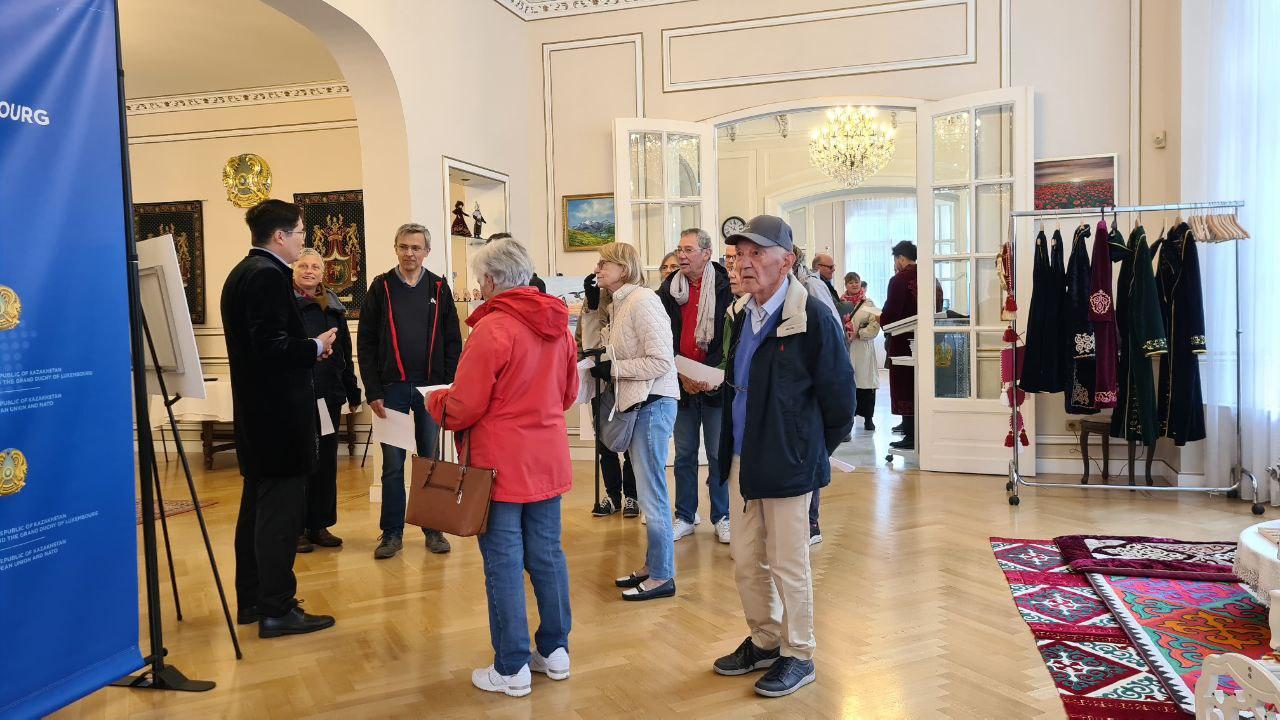 В Брюсселе все желающие могли зайти в посольство Казахстана. Здесь выставлена фотоэкспозиция о нашей стране. На фото виды природы, города Казахстана и люди, запечатлённые отечественными фотографами. Гостям показали убранство юрты, сыграли на домбре, позволили примерить национальные костюмы.