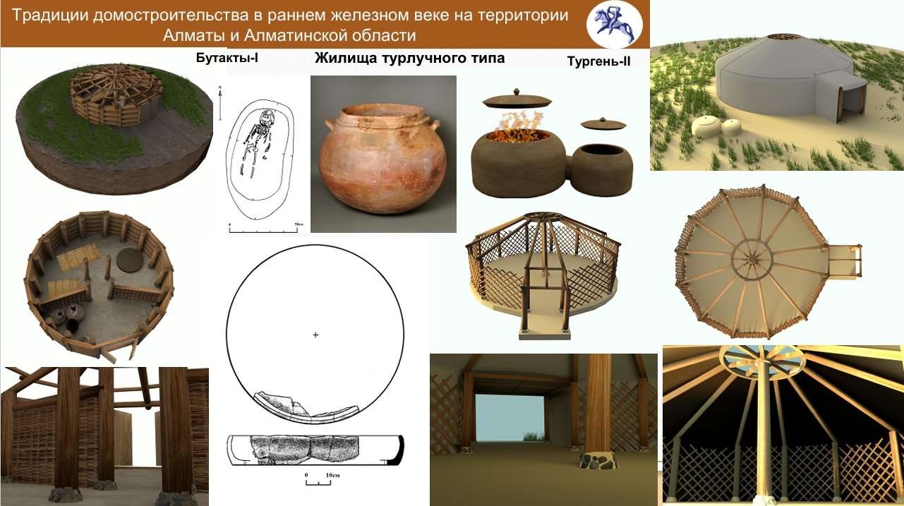 Поселение Бутакты-1, расположенное недалеко от Медеу, даёт довольно точное представление: квадратные жилища с четырёхскатной крышей, массивные деревянные столбы, врытые в центр конструкции, и большой глинобитный очаг.