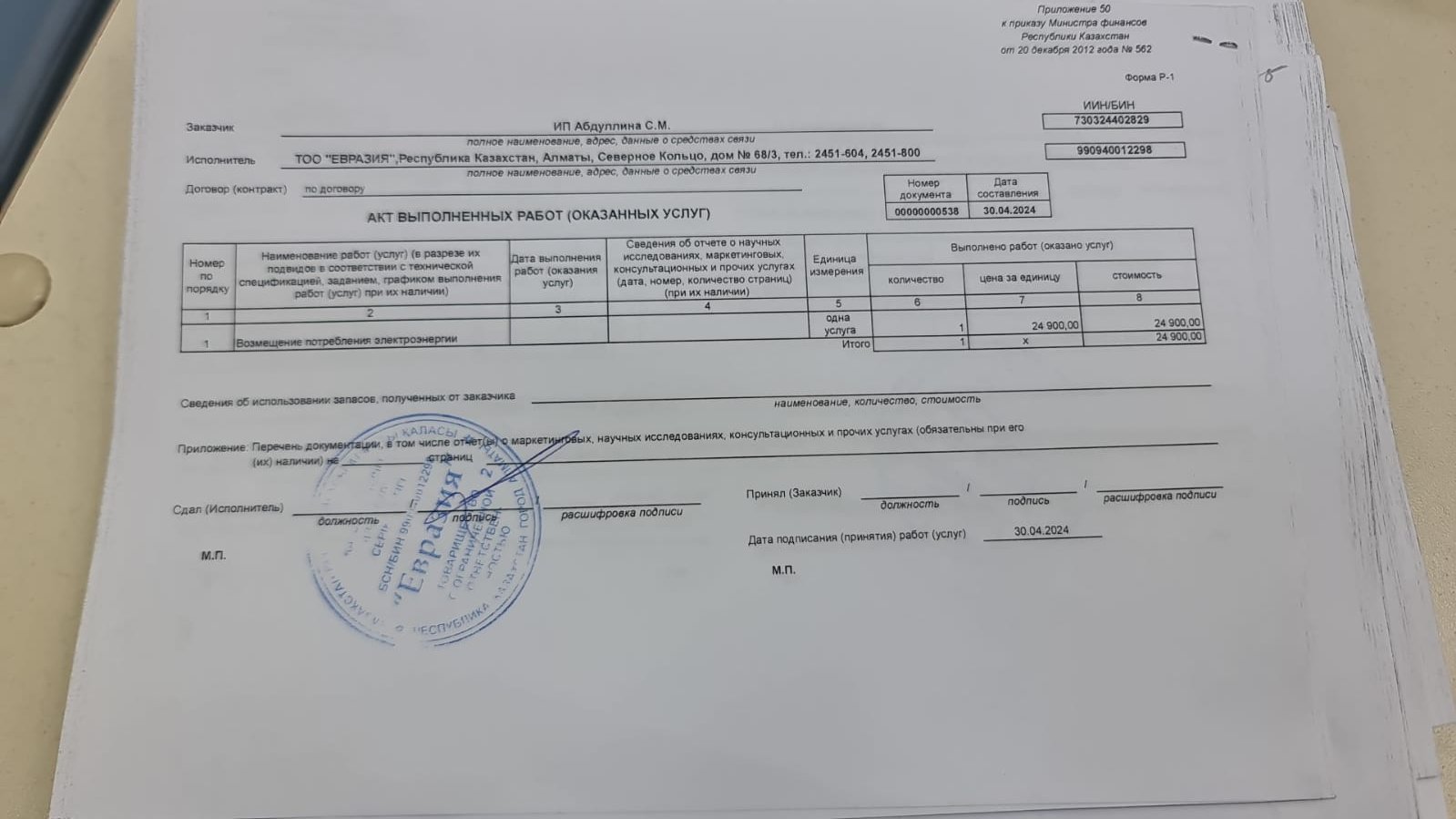 У предпринимательницы Сауле Абдуллиной в торговом центре два бутика. За апрель ей пришла квитанция за электроэнергию, только сумма в ней не указана.