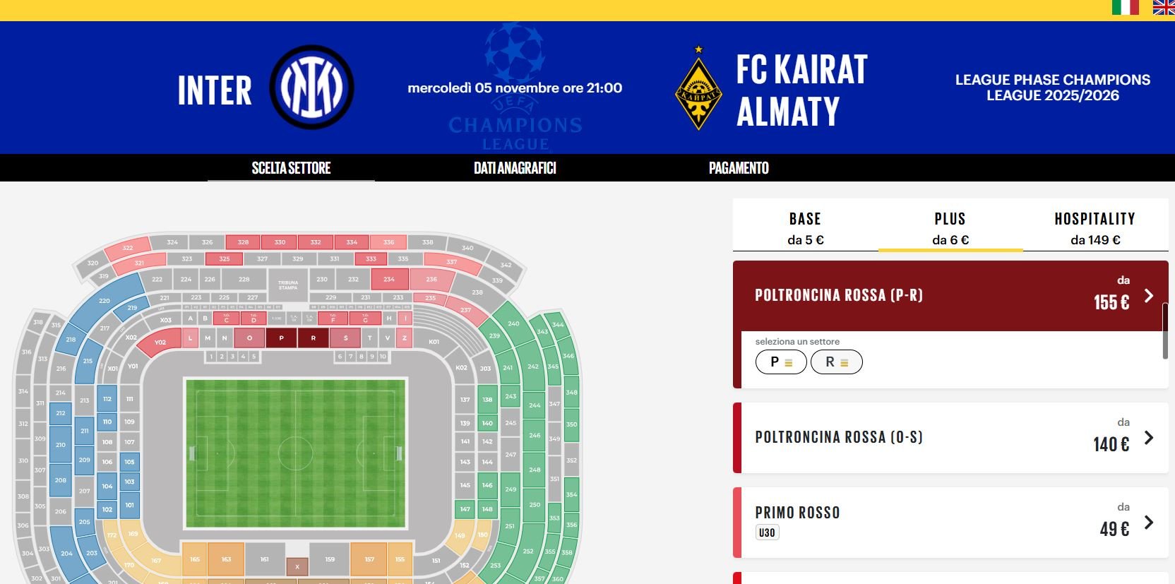 На матч в Милане на сайте Ticketon.kz билеты стоят семь тысяч тенге — без возможности выбора сектора и места. По этому поводу на сайте есть уточнение: