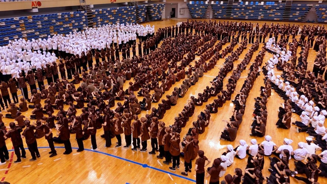 На площадке столичного Дворца единоборств 3000 детей приняли участие во флешмобе «АЛТЫН САҚА»: они выстроились в специальные композиции и изобразили форму асыка «Алшы» и надпись «Алтын сақа».