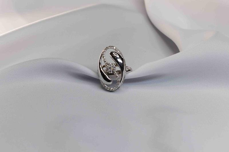 Ещё два украшения продали по 406 тыс. тенге. Первое из них — кольцо из белого золота 750-й пробы. Его центральную часть украшает стилизованная латинская буква S с 31 бриллиантом. Изначально это ювелирное изделие выставляли на торги за 580 тыс. тенге.