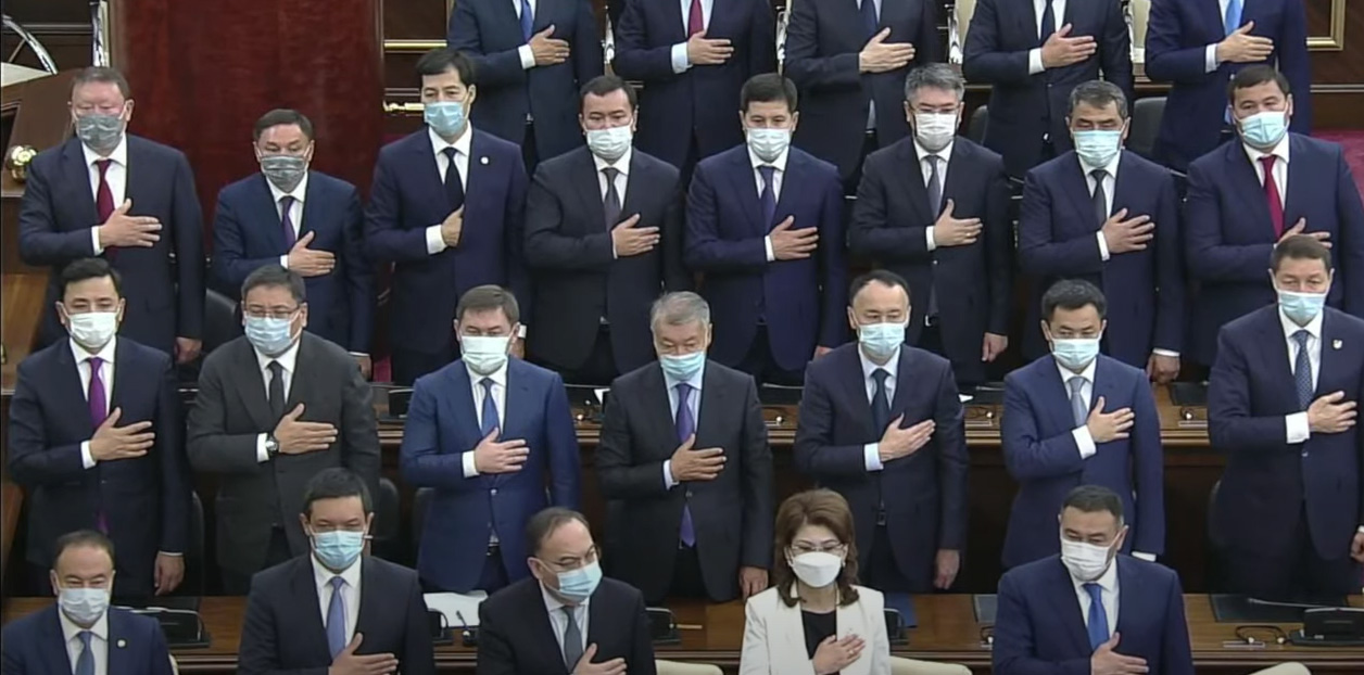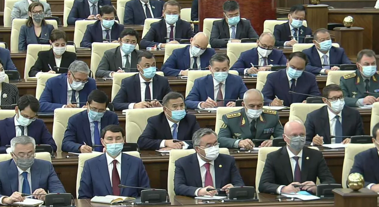 На самом заседании присутствовали все депутаты Сената и Мажилиса плюс их спикеры – Маулен Ашимбаев и Ерлан Кошанов. Последний представил президента.