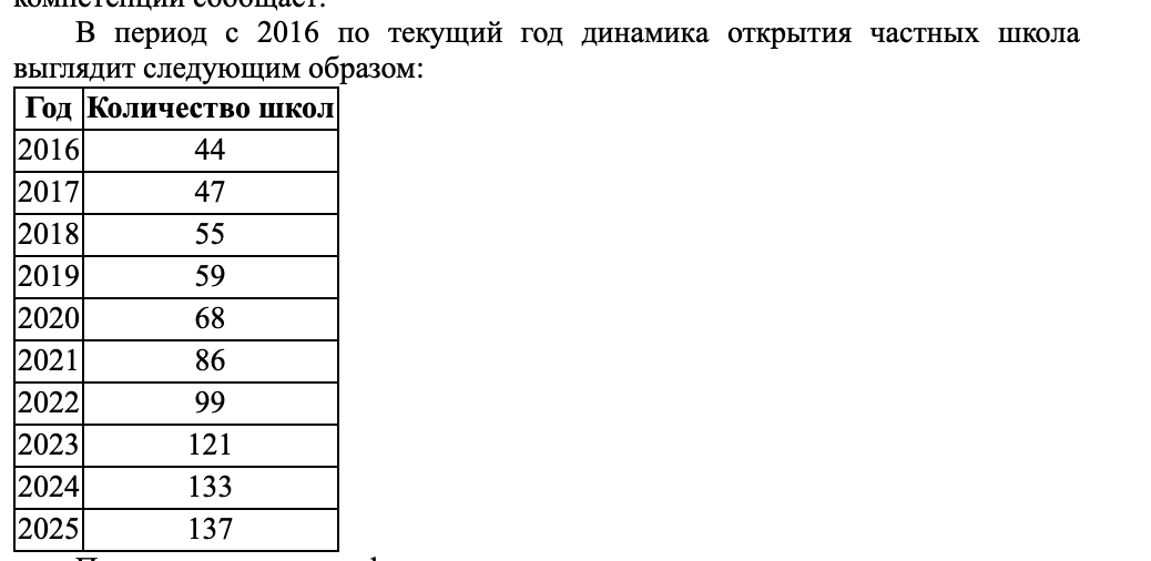 Так или иначе, под выселение попала не только «Арай». Аренда с частными заведениями полетела. А что вообще с частным образованием в городе? Его количество, как оказалось, росло каждый год.