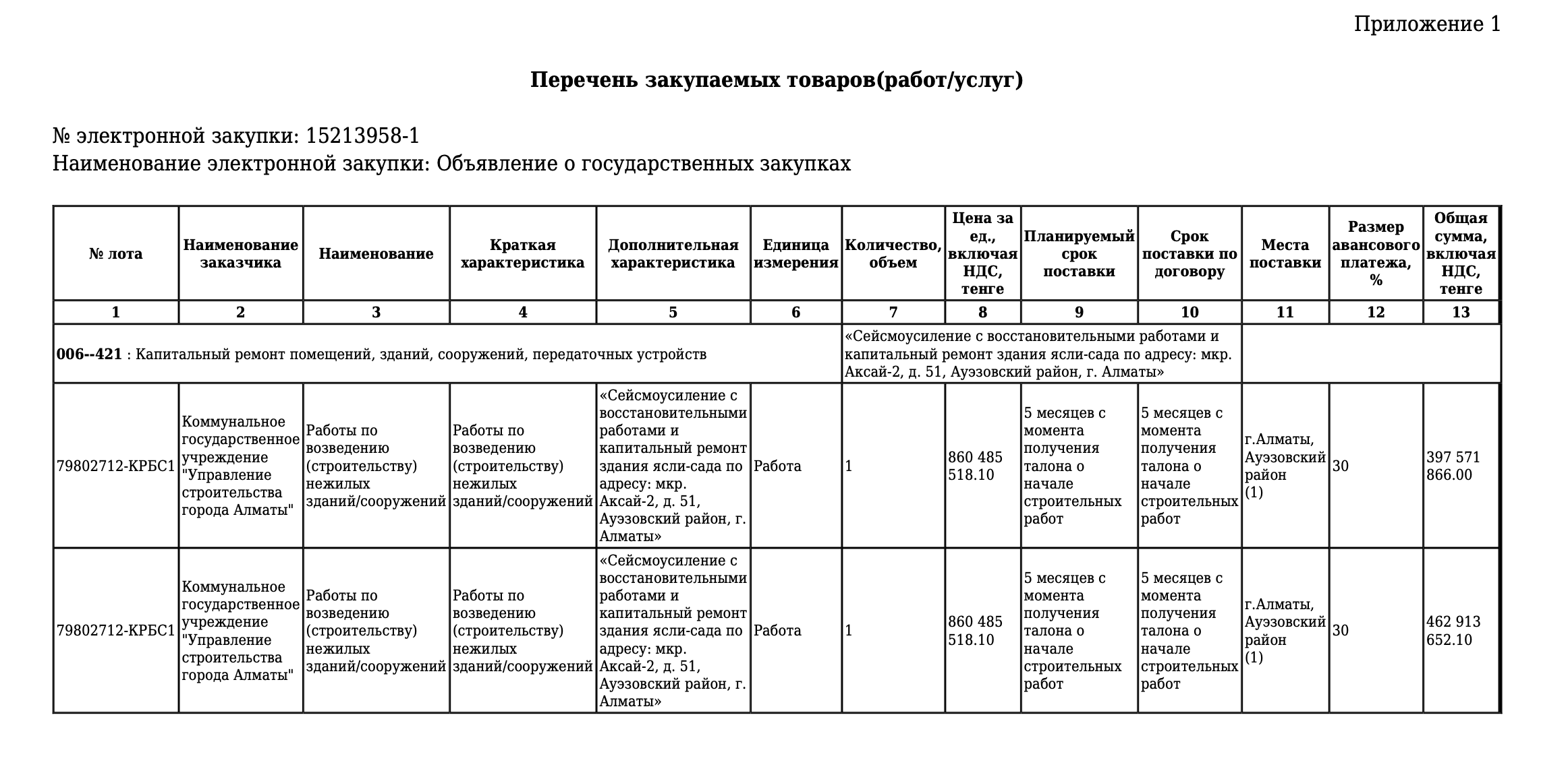 Стоимость капитального ремонта с сейсмоусилением — 860 млн 465 тысяч тенге. Застройщик — ТОО «СК 7 Строй».