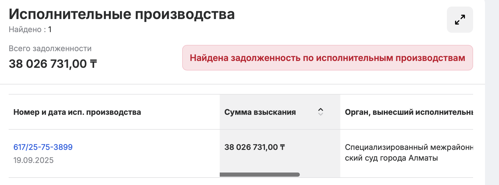 В экономическом суде Алматы компания несколько раз была ответчиком, есть исполнительное производство на 38 млн тенге.