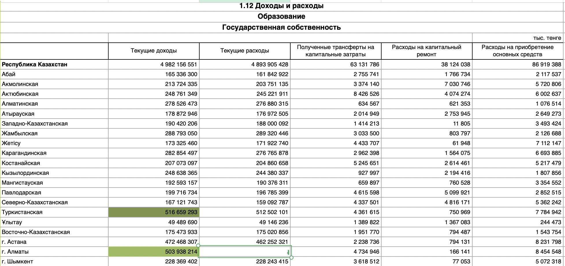 Доходы образования, обеспечиваемые государством, — 4,9 трлн тенге, расходы — 4,8 трлн тенге.