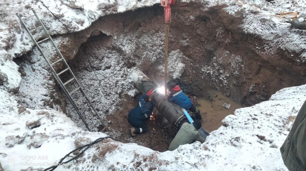 ЧС в Экибастузе: повреждённую часть трубы соединили муфтой