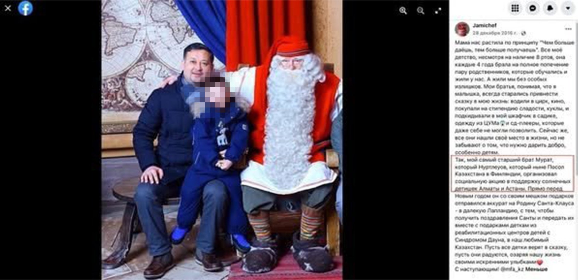 На снимках, помимо подарков от «Санта-Клауса из Лапландии», заметили и фигуру, связанную с Муратом Нуртлеу — на тот момент главой президентской администрации.