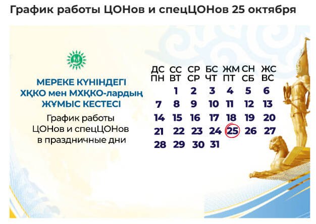 В пятницу, 25 октября, центры обслуживания населения (ЦОНы), включая специализированные, будут закрыты в связи с празднованием Дня Республики, сообщает Orda.kz со ссылкой на госкорпорацию «Правительство для граждан».