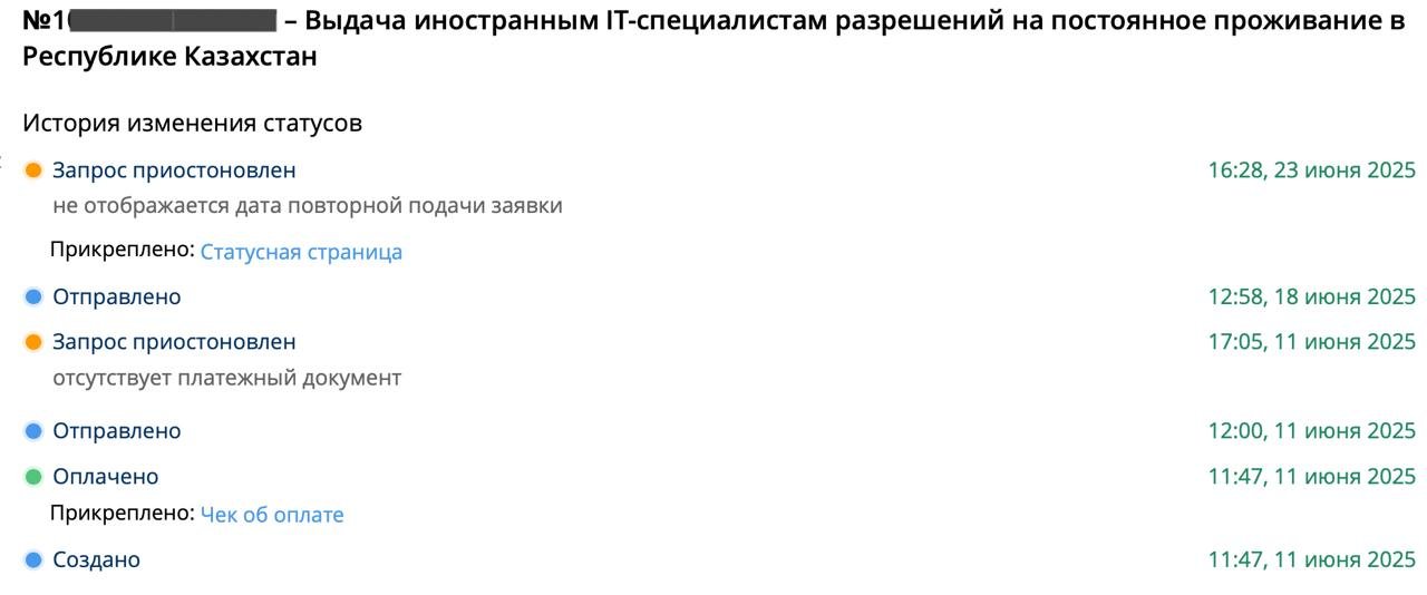При этом, квитанций у участников Digital Nomad Residency нет, потому что eGov выдал ошибку. А причиной одного из отклоения заявок было... отсутствие платёжного документа. То есть, система просто не увидела оплаченную пошлину.