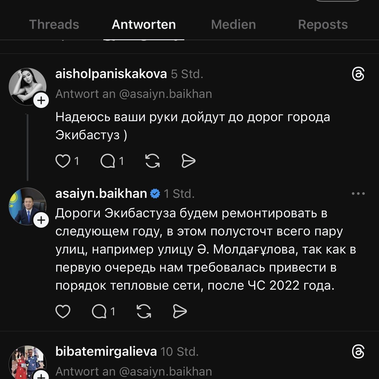 В Threads мы, кстати, заметили, что аким активно отвечает на обращения граждан.