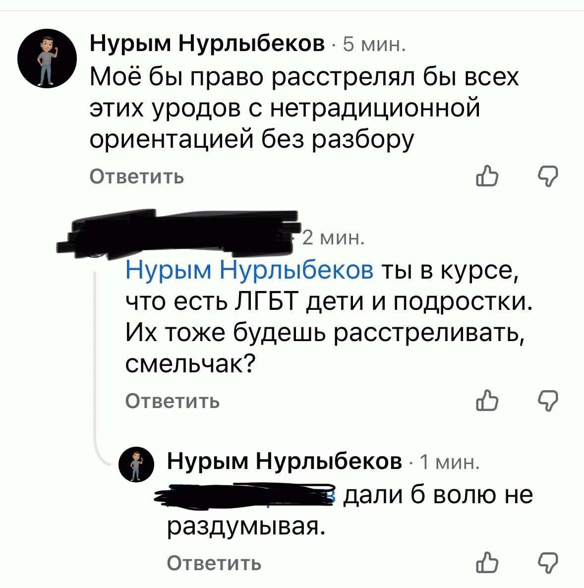 А вот те кто, кто выступает против поправок, больше высказываются в Threads и TikTok. Мысли у казахстанцев, честно говоря, тревожные — многие понимают, что закон не только об ЛГБТ, но и о цензуре. Законопроект многие раскритиковали вместе с теми, кто за него выступил в парламенте.