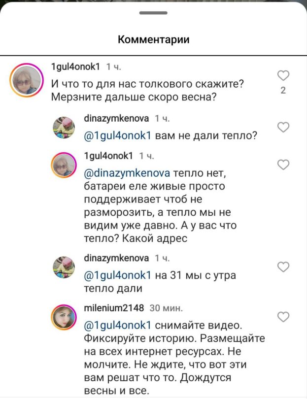 Еще не все получили тепло в дома. В соцсетях жители жалуются, что трубы еле теплые. Кто-то же напротив, говорит: тепло дали. Некоторые уверяют, что не видели свои трубы теплыми еще с прошлой аварии. Местный журналист Виталий Шевченко уточняет: «Сегодня (ТЭЦ – прим. автора) работает. Вчера вода остыла в трубах».