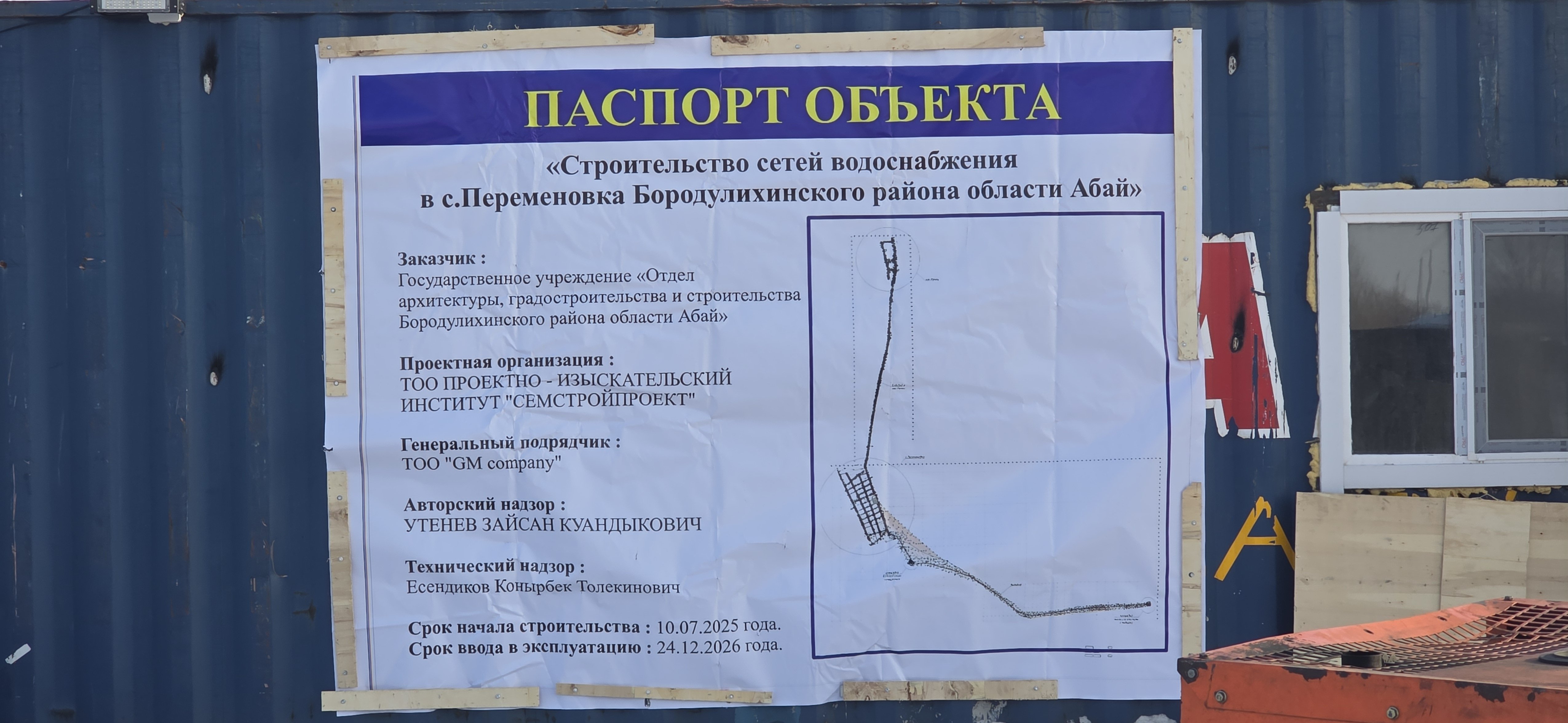 Село Переменовка. Согласно ответу управления ЖКХ области Абай, в 2025 году здесь должны были быть построены сети водоснабжения. Проверка демонстрирует, что работы ещё явно не закончены.