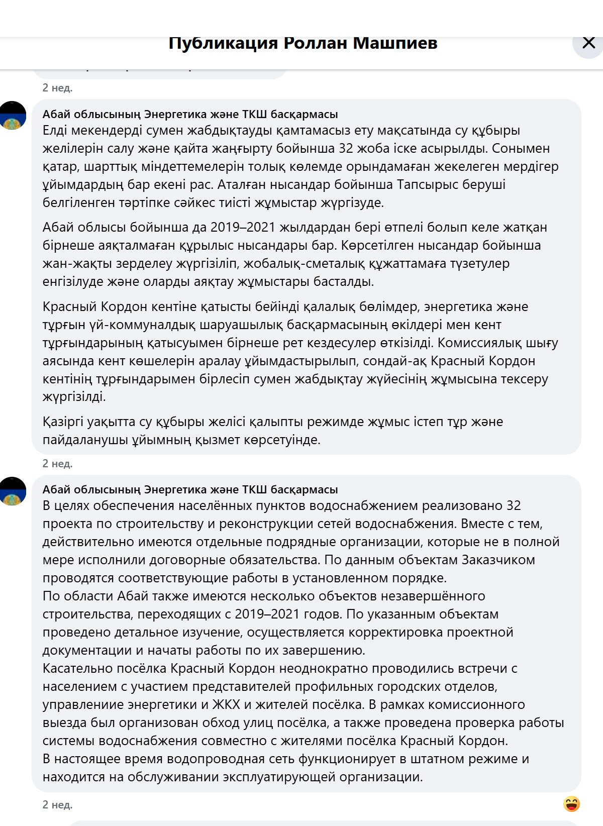 Итак, точкой отсчёта для проверки стали публикации члена общественного совета области Абай и независимого совета развития региона Роллана Машпиева, который с 20 января 2026 года объезжает населённые пункты области и проверяет степень законченности водопроводов.