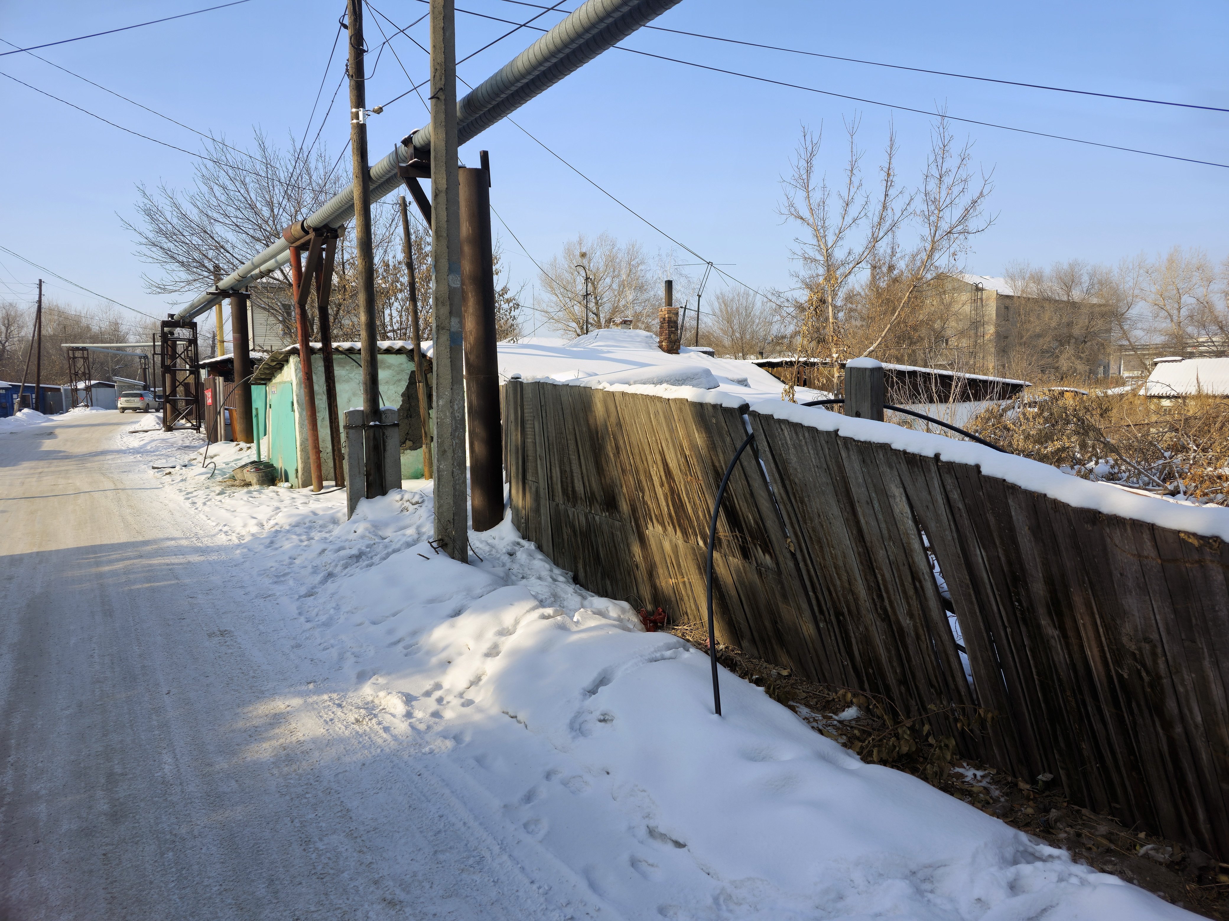 Местные жители говорят, что работы по проекту ещё не закончены. Воды в водопроводе нет. Никто пока не подключился. Это похоже на правду. Будь в тонких пластиковых трубах вода, их бы разорвало льдом в сильные морозы.