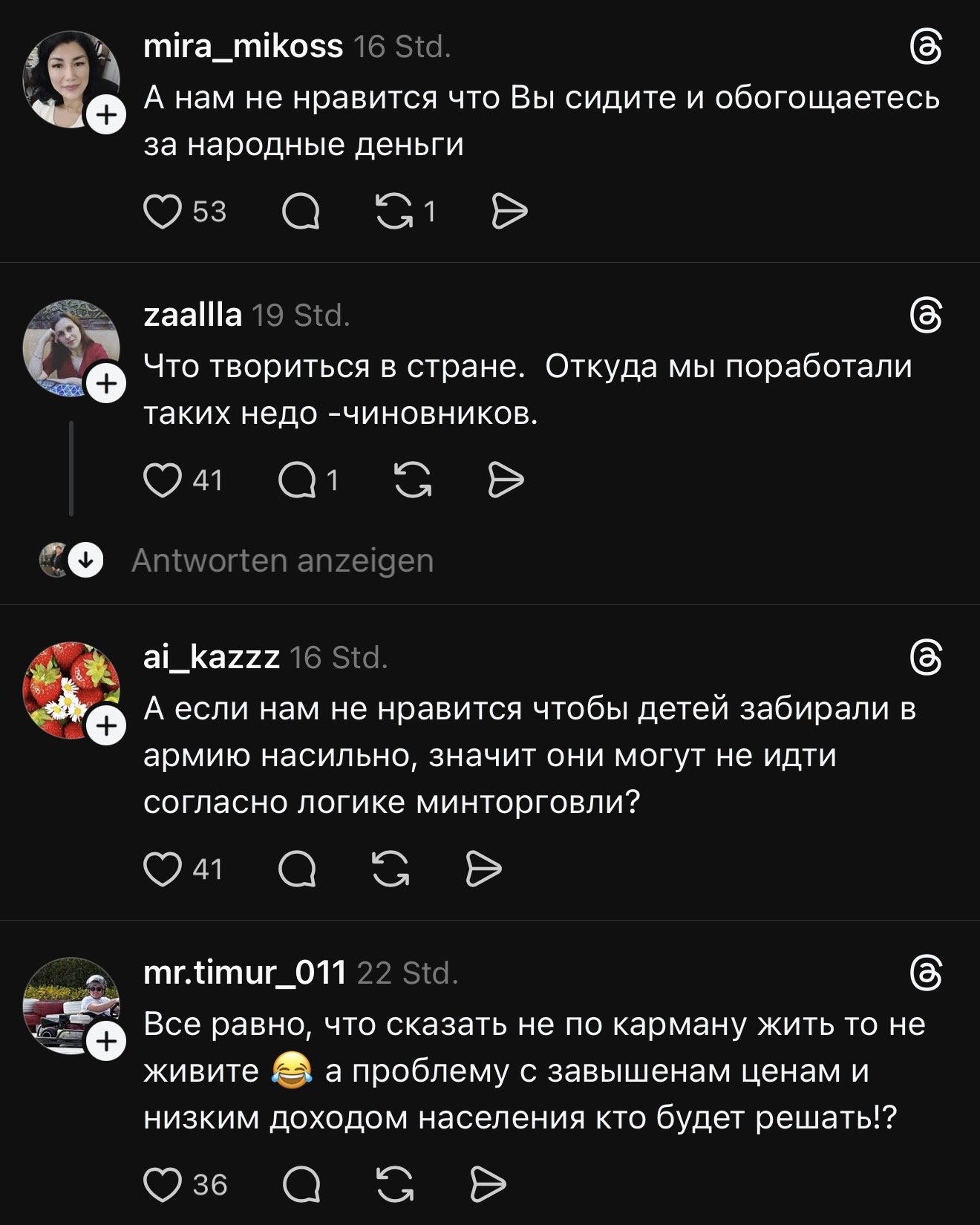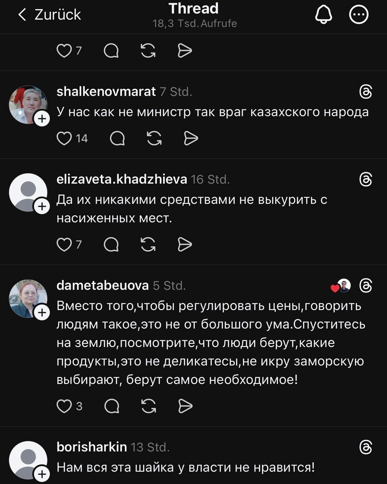 А вот в казахстанском сегменте гневные комментарии сыпались в сторону вице-министра торговли и интеграции Айдара Абилдабекова. Поводом стал его ответ на брифинге. Журналист напомнила о ролике, в котором девушка сравнивала цены в Казахстане и Германии — и сравнение оказалось не в пользу нашей страны.