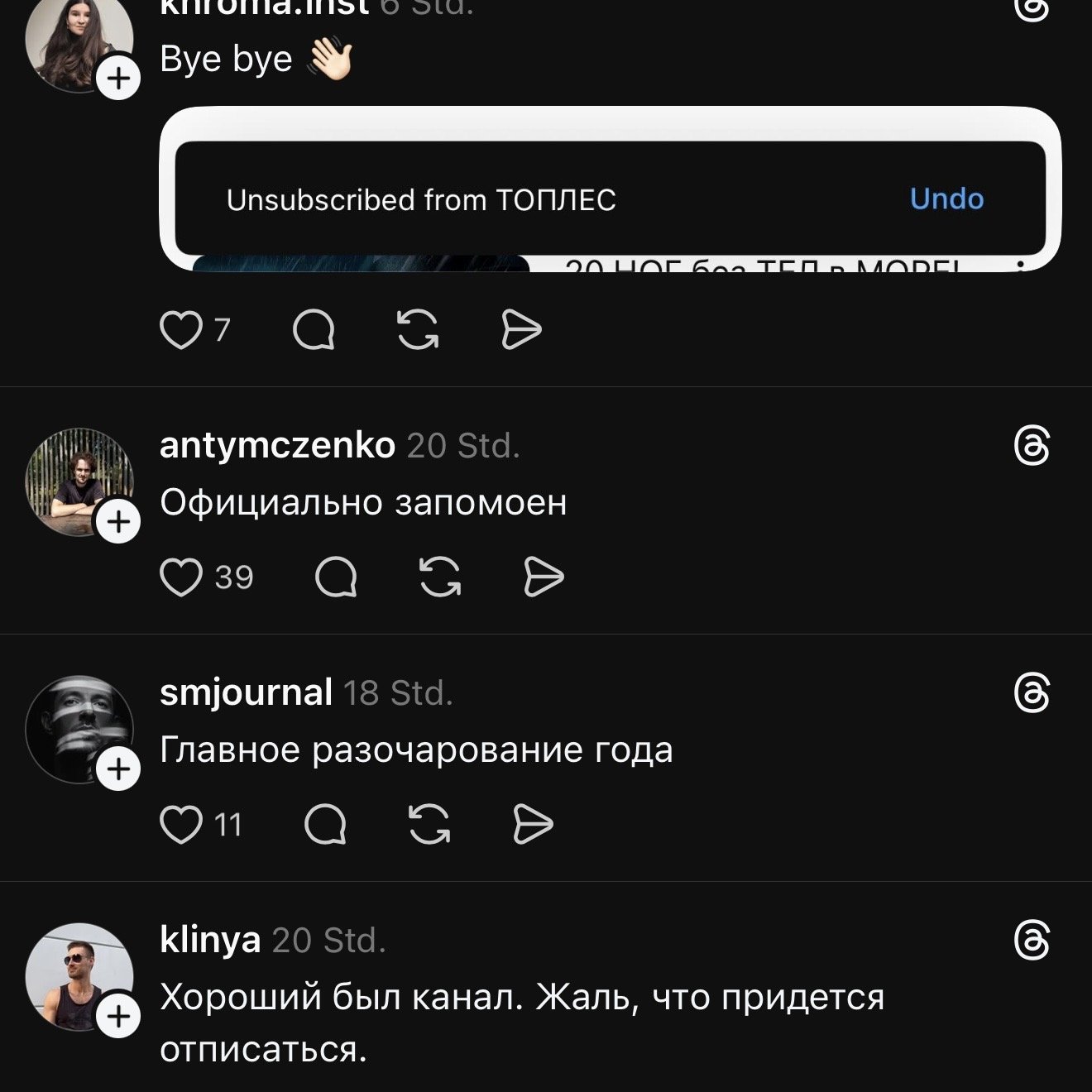 Но теперь волна обожания сменилась волной отписок. Всё началось с поста о создании в России войск беспилотников. В нём автор канала назвал российских военных «бойцами, которые отдают жизни за страну».