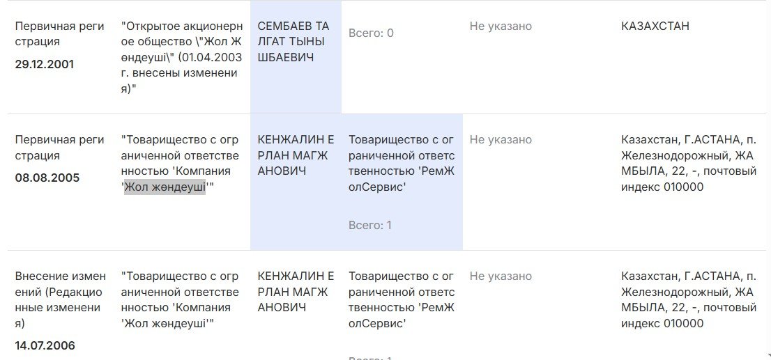 Прямых связей между Муталипом и Гаджиевым нет. Но есть одно любопытное совпадение. Судя по базам данных, с 2001-го по 2017 годы компания, ныне известная под названием Integra Construction KZ, носила иное имя: ТОО «Компания “Жол жөндеуші”». И в 2015-2017 годах управляющим директором «Жол жөндеуші» был Гаджи Гаджиев собственной персоной.