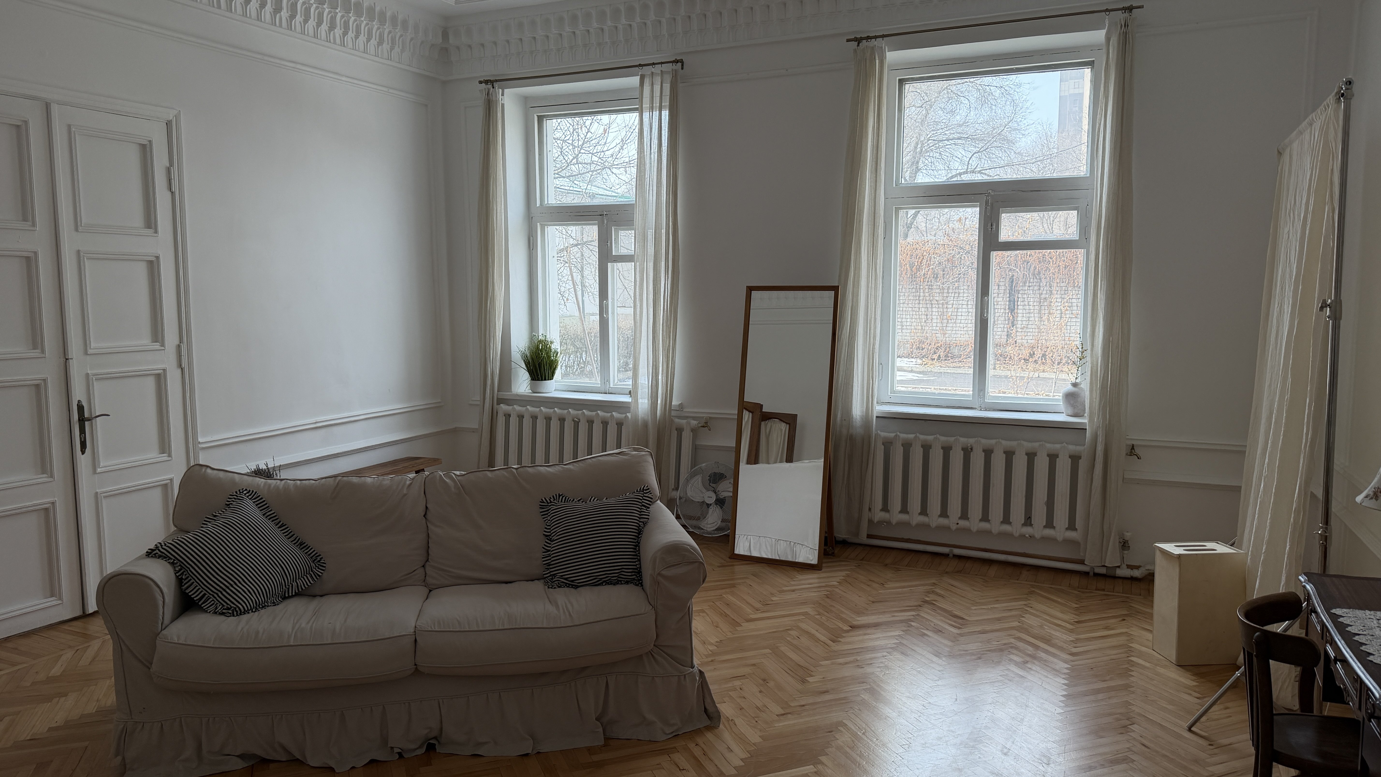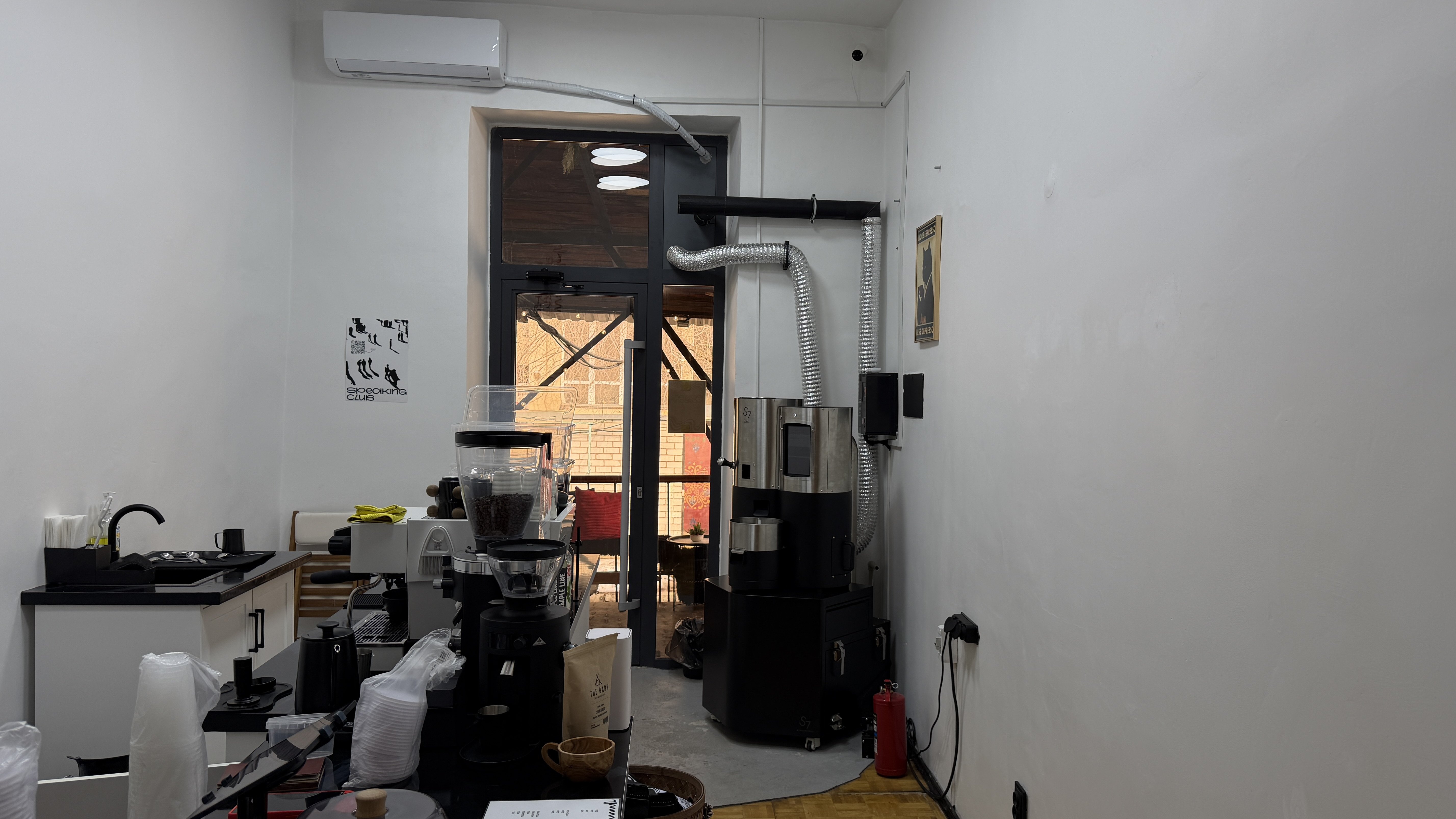 На первом этаже расположились две кофейни, шоурум и так далее. Одним из новых резидентов площадки стала фотостудия. Как рассказала её представительница Жибек Жумаханова, она переехала туда в июне прошлого года — спустя три-четыре месяца после скандала. После того как прежние арендаторы полностью съехали, Жибек увидела объявление и решила арендовать помещение.