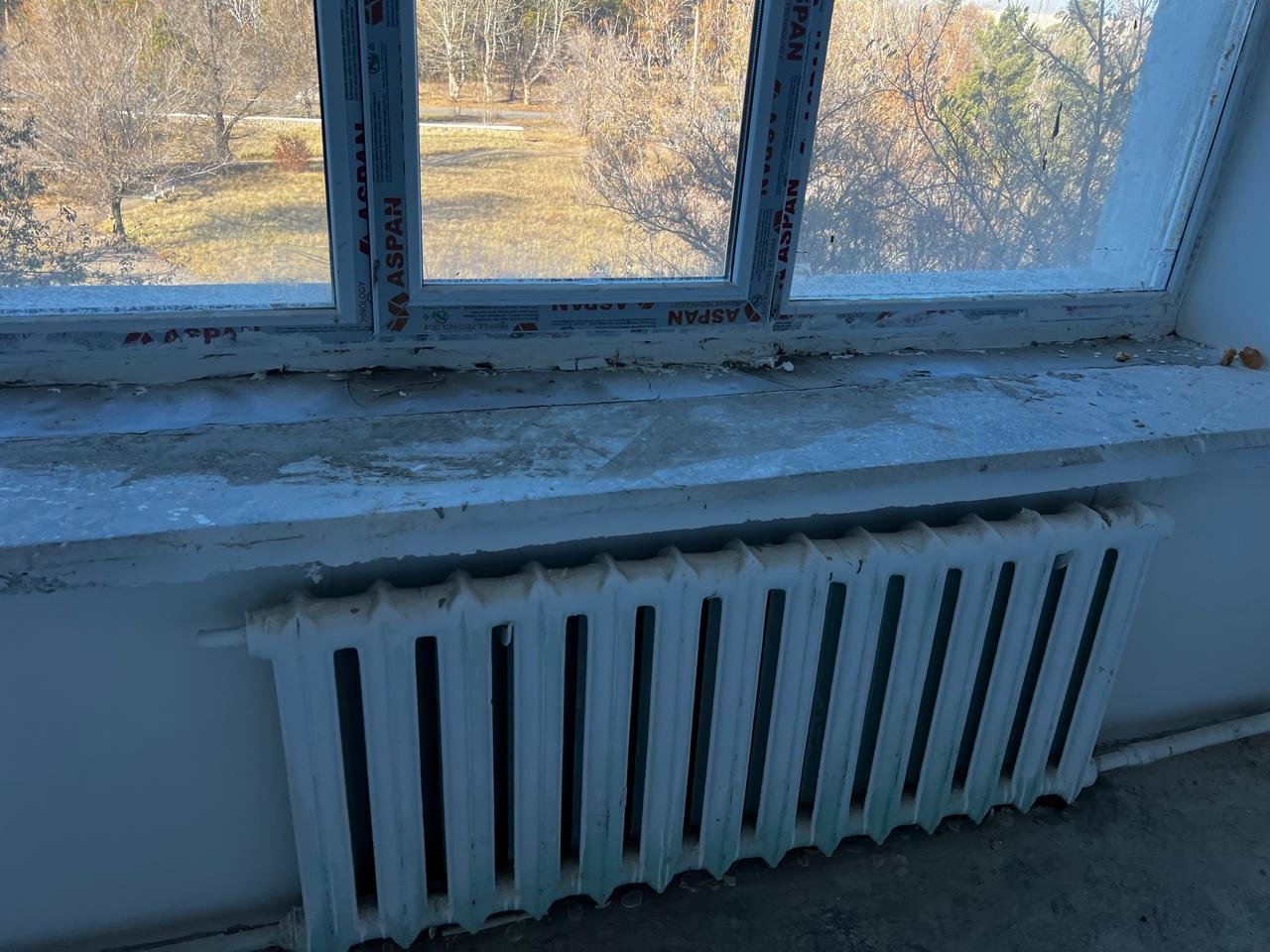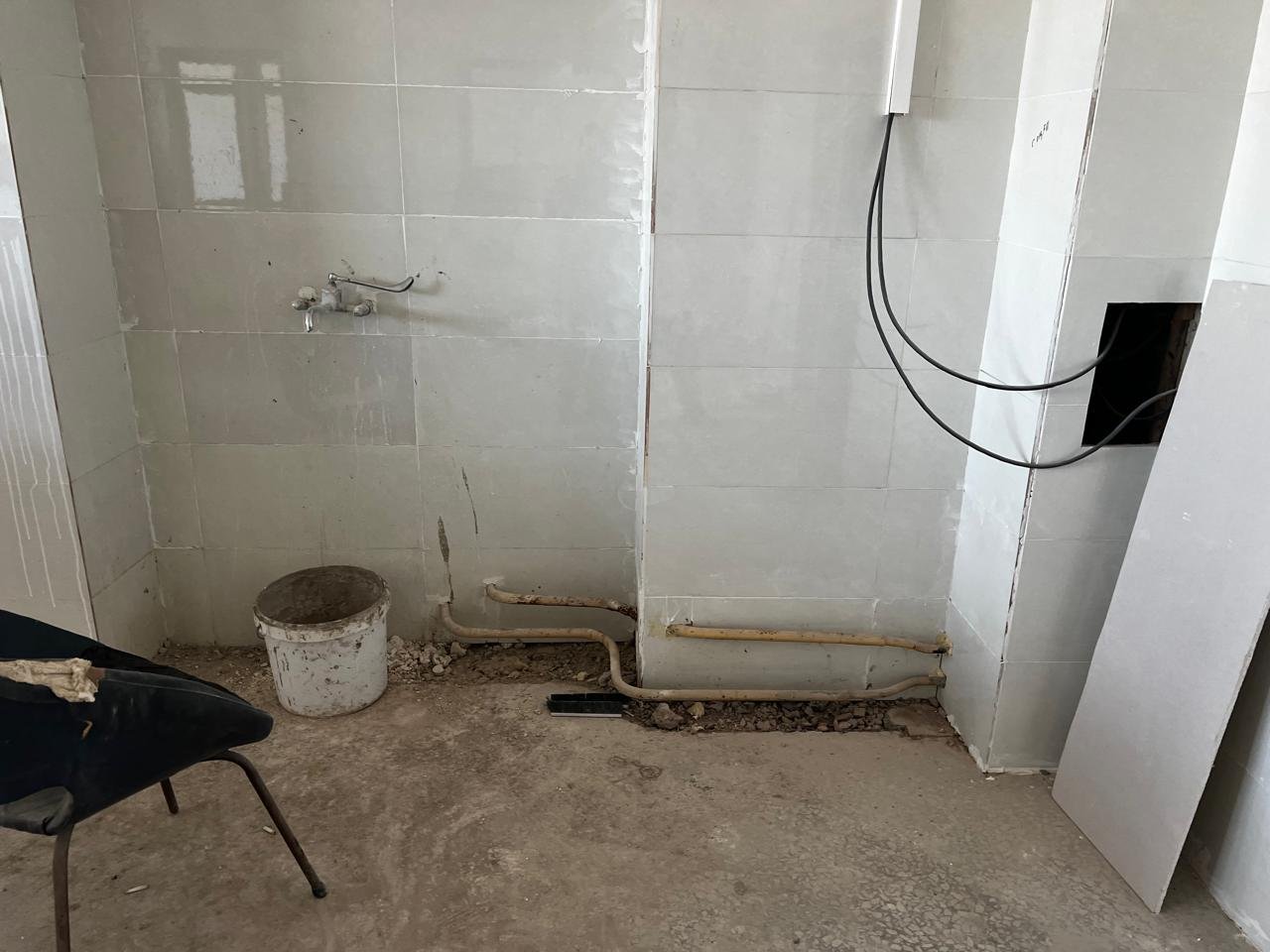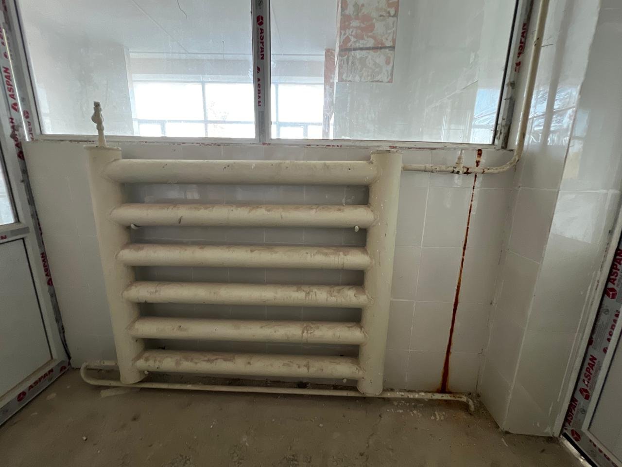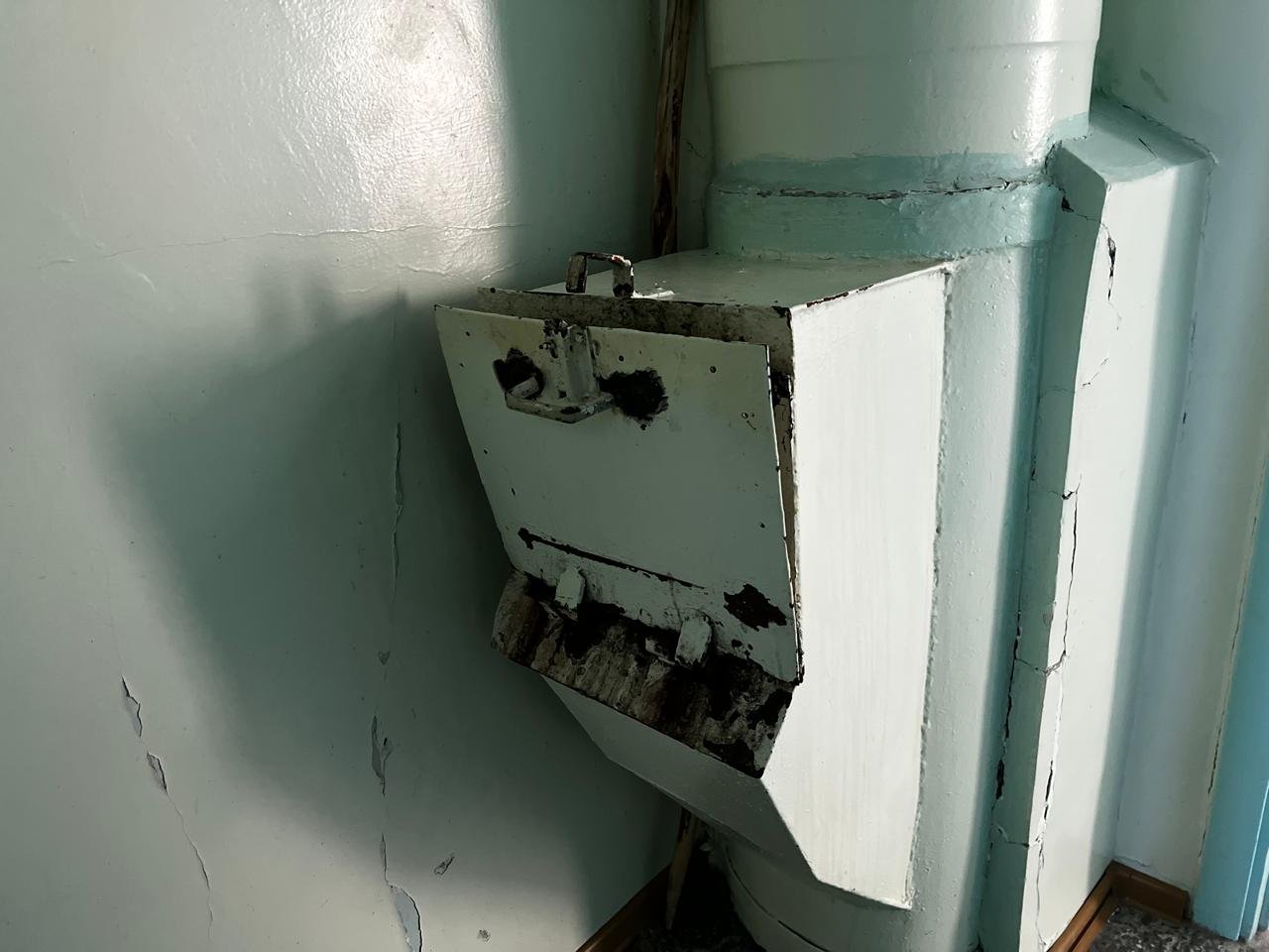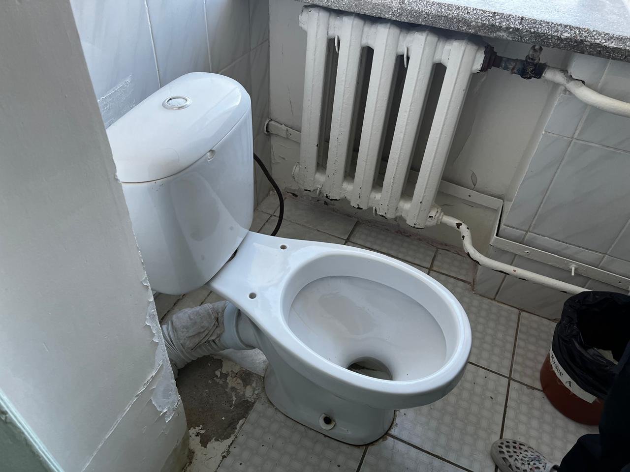 «Отопление должно быть заменено, но оно осталось в том же виде. Трубы со времён постройки, то есть 1984 года, представляете? Или вот здесь, смотрите. Как Равшан и Джамшут говорят, заменим потом. Когда, если кафель уложен?»удивляется Бахтияр Ерикович.
