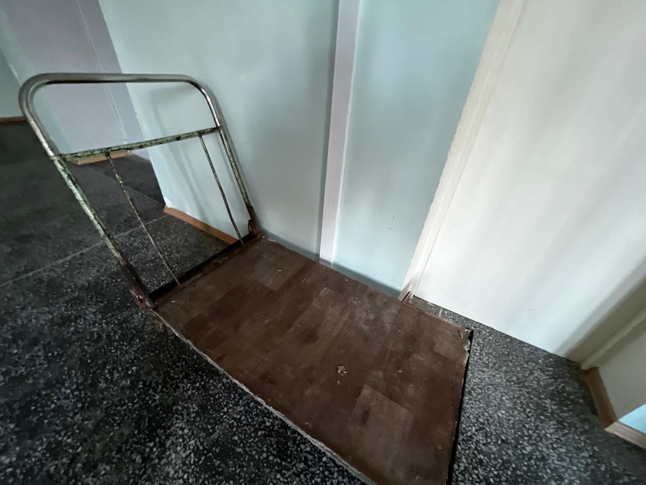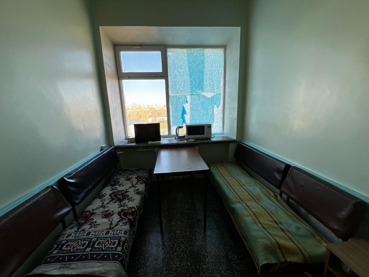 Тягостное впечатление усиливает «антикварная» мебель — провалившиеся кровати, не раз «подшаманенные» столы и стулья, обшарпанные, местами подгнившие, тумбы.