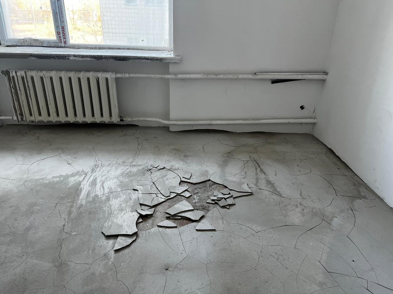 Полы. Строители, по словам собеседника, уложили стяжку на неровный цемент. Видимо, будучи уверенными, что линолеум всё скроет.