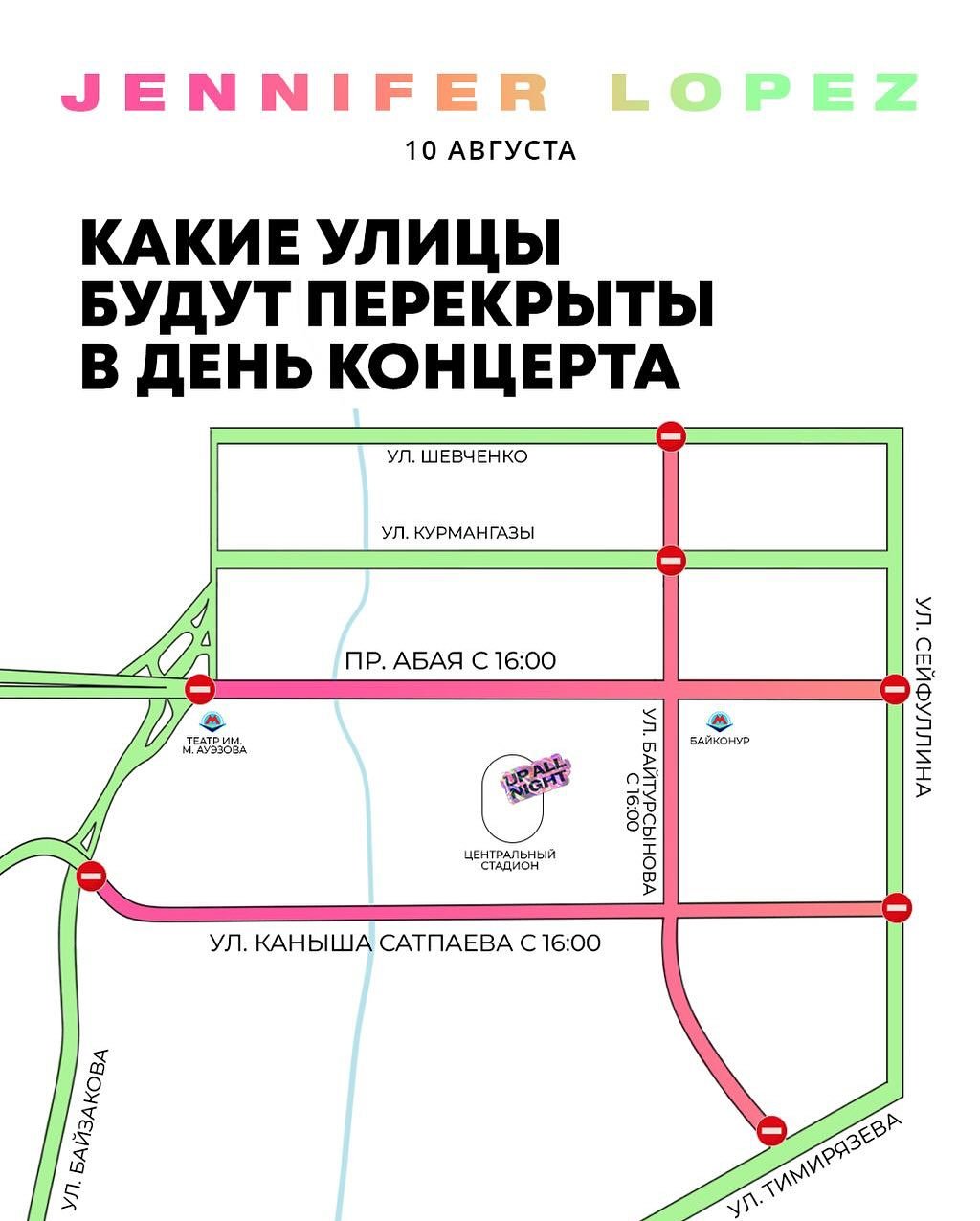 Из-за концерта Джей Ло перекроют три улицы в центре Алматы