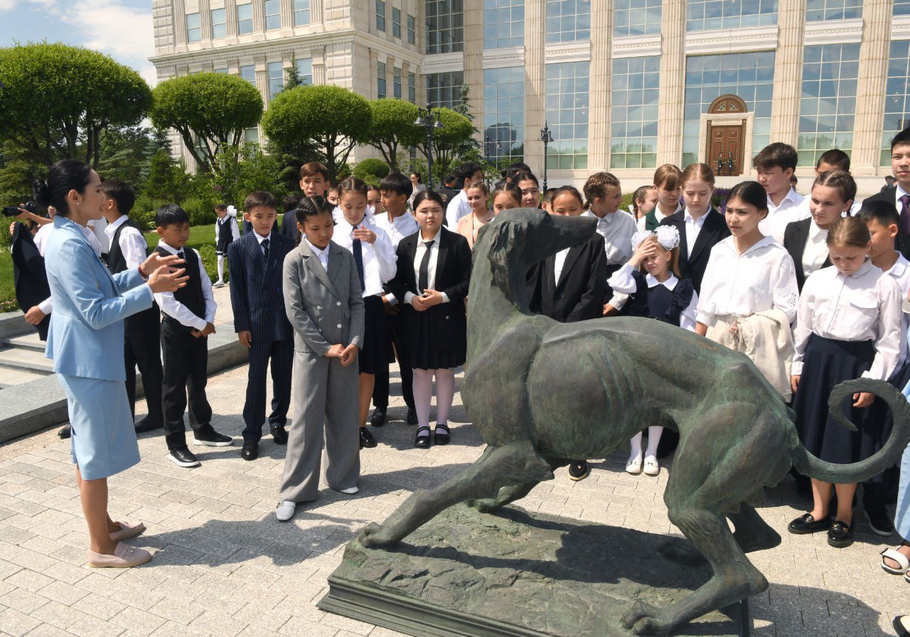 Школьники осмотрели центральный парадный холл Акорды и залы, предназначенные для проведения официальных мероприятий, библиотеку главы государства, а также сад на территории резиденции.