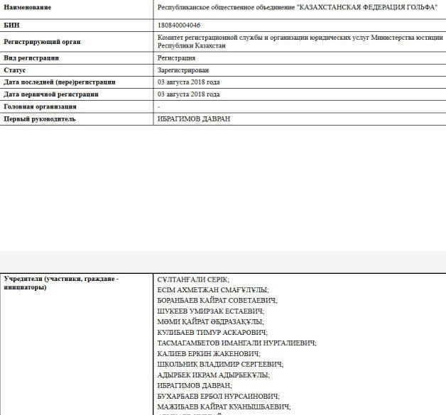 Федерация гольфа существует уже три десятилетия. Но юридически одноимённую компанию зарегистрировали лишь в 2018 году, вскоре после ухода Абыкаева. Сейчас её возглавляет Даврон Ибрагимов, сын покойного миллиардера Алиджана Ибрагимова.
