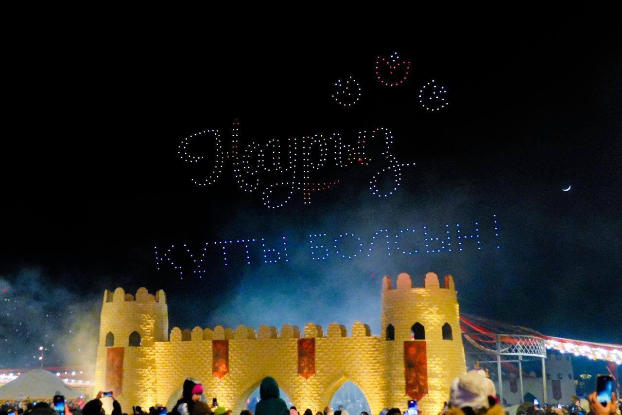 Завершилось шоу яркой надписью «Наурыз құтты болсын!», которая озарила ночное небо и стала финальным аккордом праздничного представления.