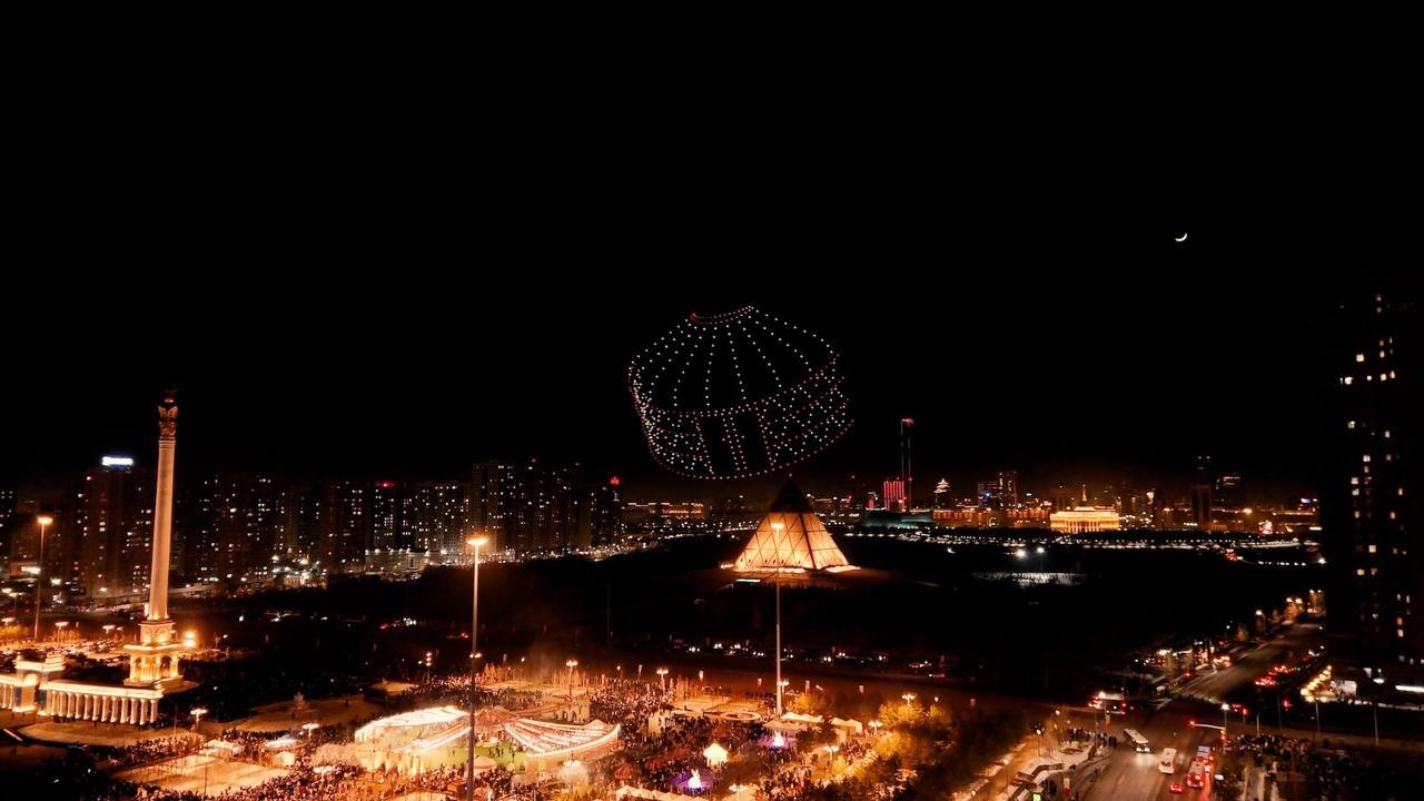 - Юрта, тюльпан и солнце: дроны украсили небо Астаны на Наурыз