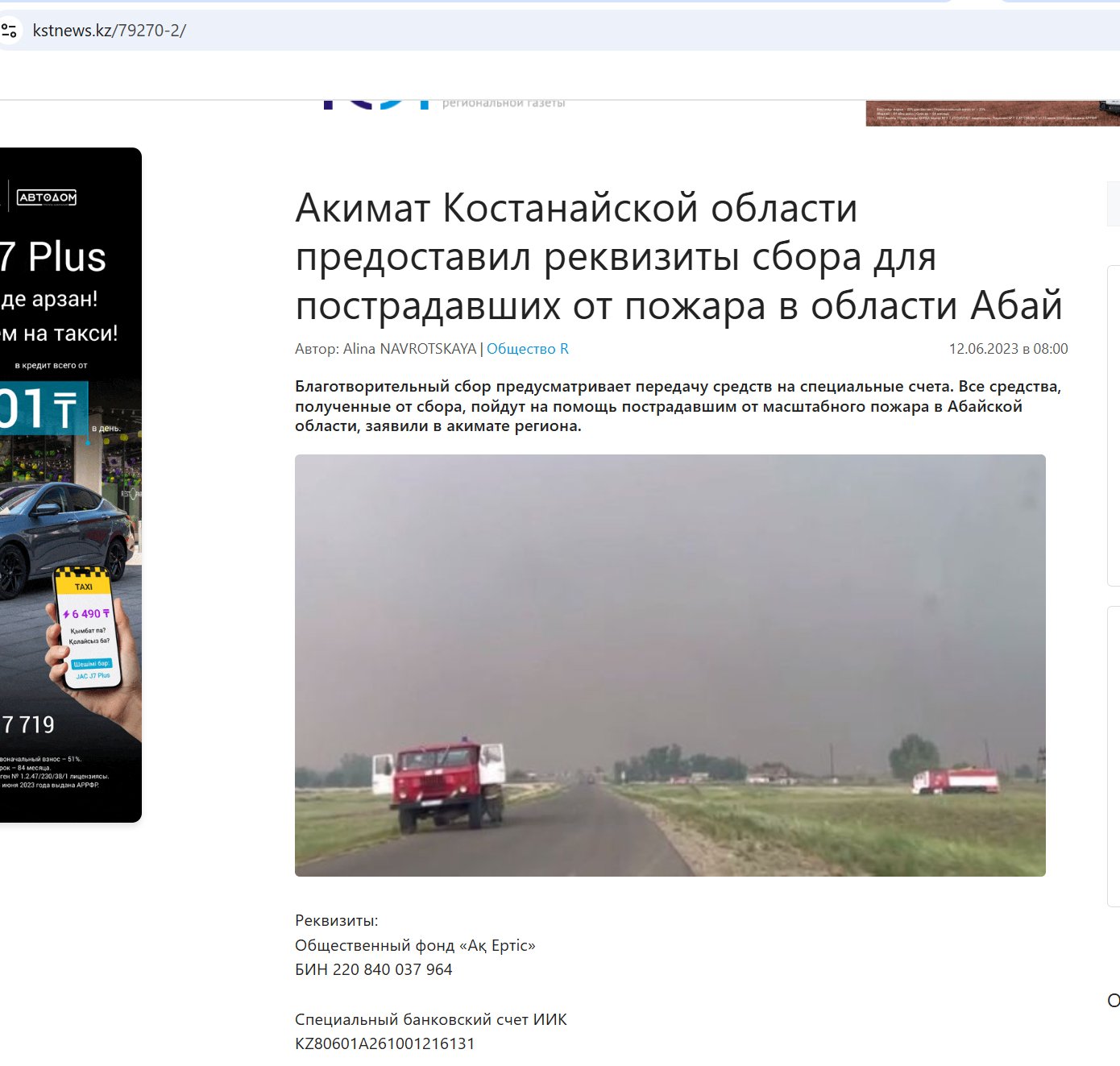 Последний кейс также немного объясняет работу «Ақ Ертіс». Как следует из скриншота выше, одним из организаторов сбора выступал акимат области Абай. В сборе приняли участие и акиматы других областей.