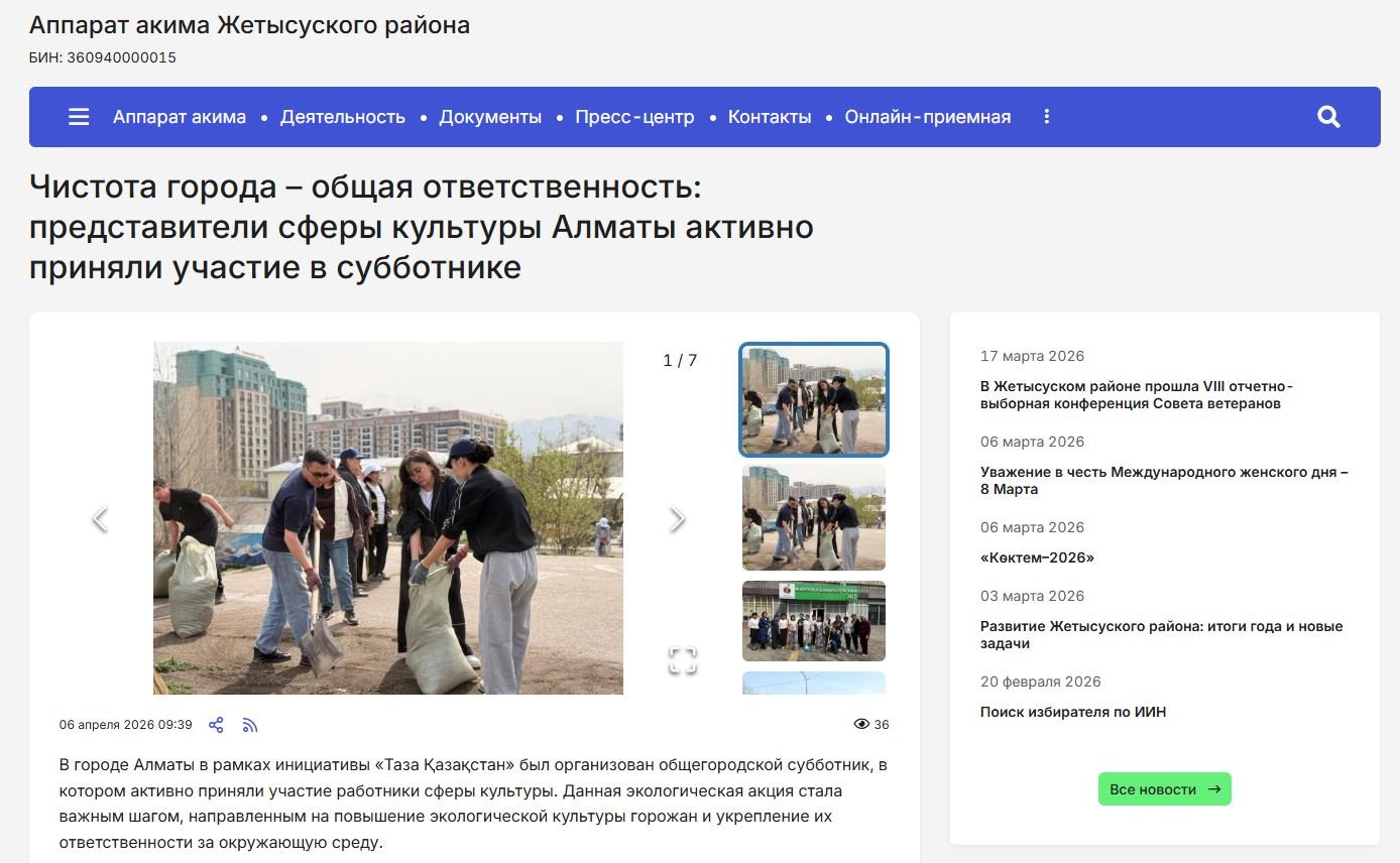 И это несмотря на то, что в Казахстане ещё с 23 марта, в «Тазару күні», стартовали мероприятия по уборке общественных пространств и природных территорий. А непосредственно в Жетысуском районе большой субботник прошёл буквально 6 апреля.