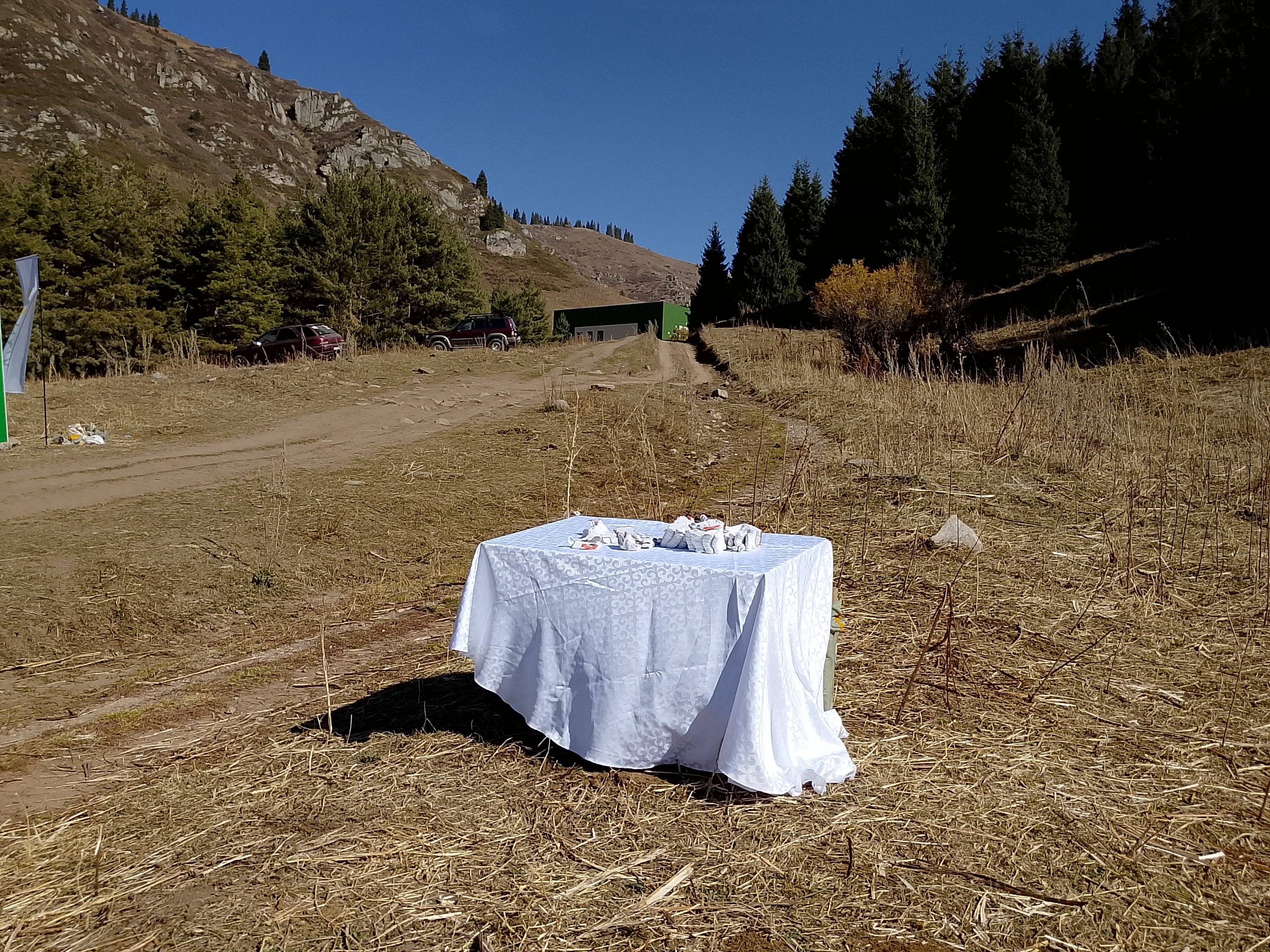 На высоте две тысячи метров над уровнем моря, в урочище Кок-Жайляу, в субботу утром собрались пять сотен добровольцев, чтобы посадить шесть (с небольшим) сотен саженцев тянь-шанской ели.