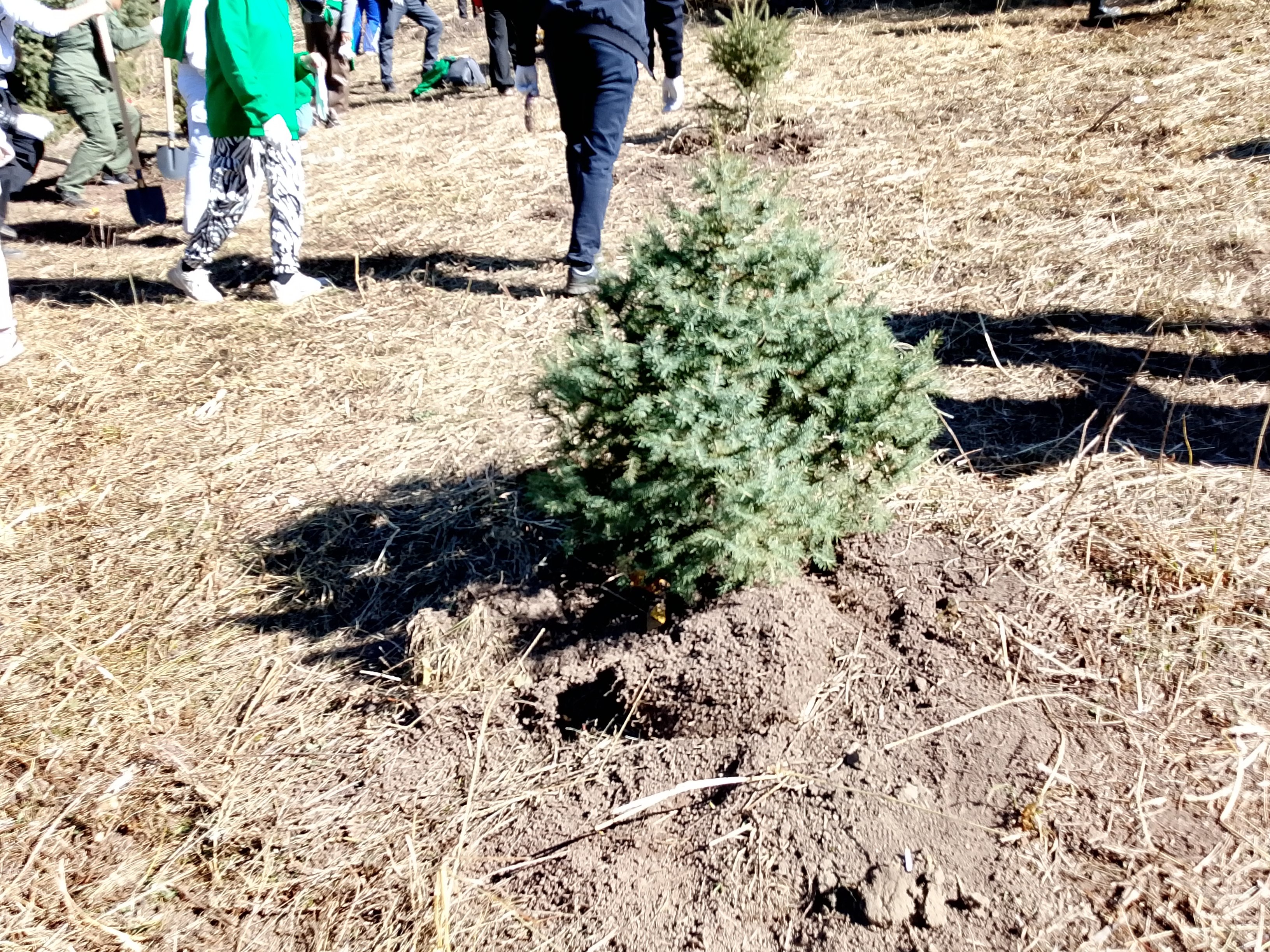 Людям раздали перчатки. Ведущий на счёт три объявил официальную посадку деревьев. «Вы делаете шаг в историю», — объявил он. Участники двинулись к склону горы — к заранее заготовленным лункам.