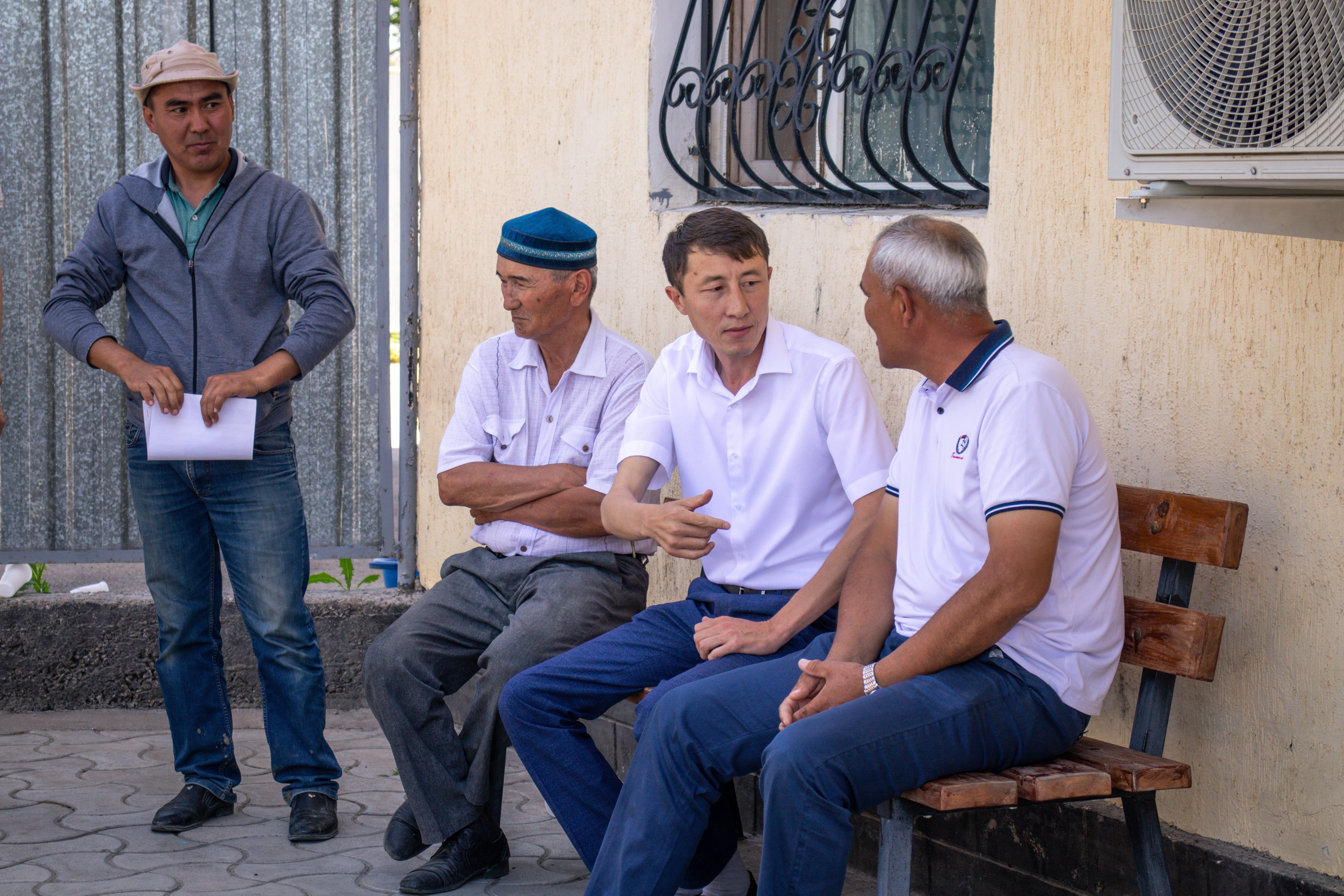 Среди всех выделяется молодой мужчина в белой рубашке и брюках — исполняющий обязанности акима Куртинского сельского округа Дулат Абилгани. Обычно чиновники избегают журналистов, но не Дулат — он, наоборот, сам подходит, жмёт руку, ведёт к себе в кабинет и рассказывает всё как есть.