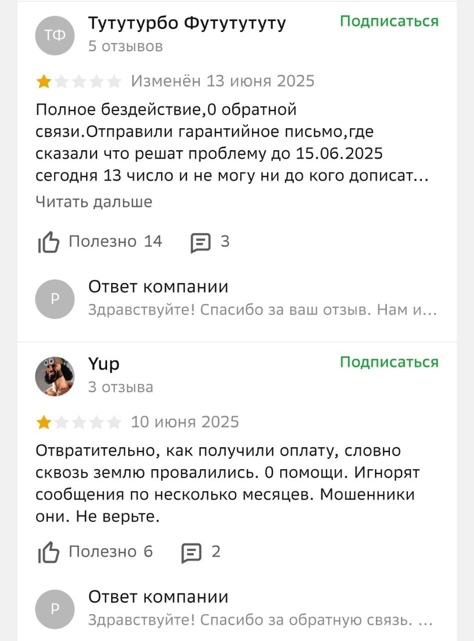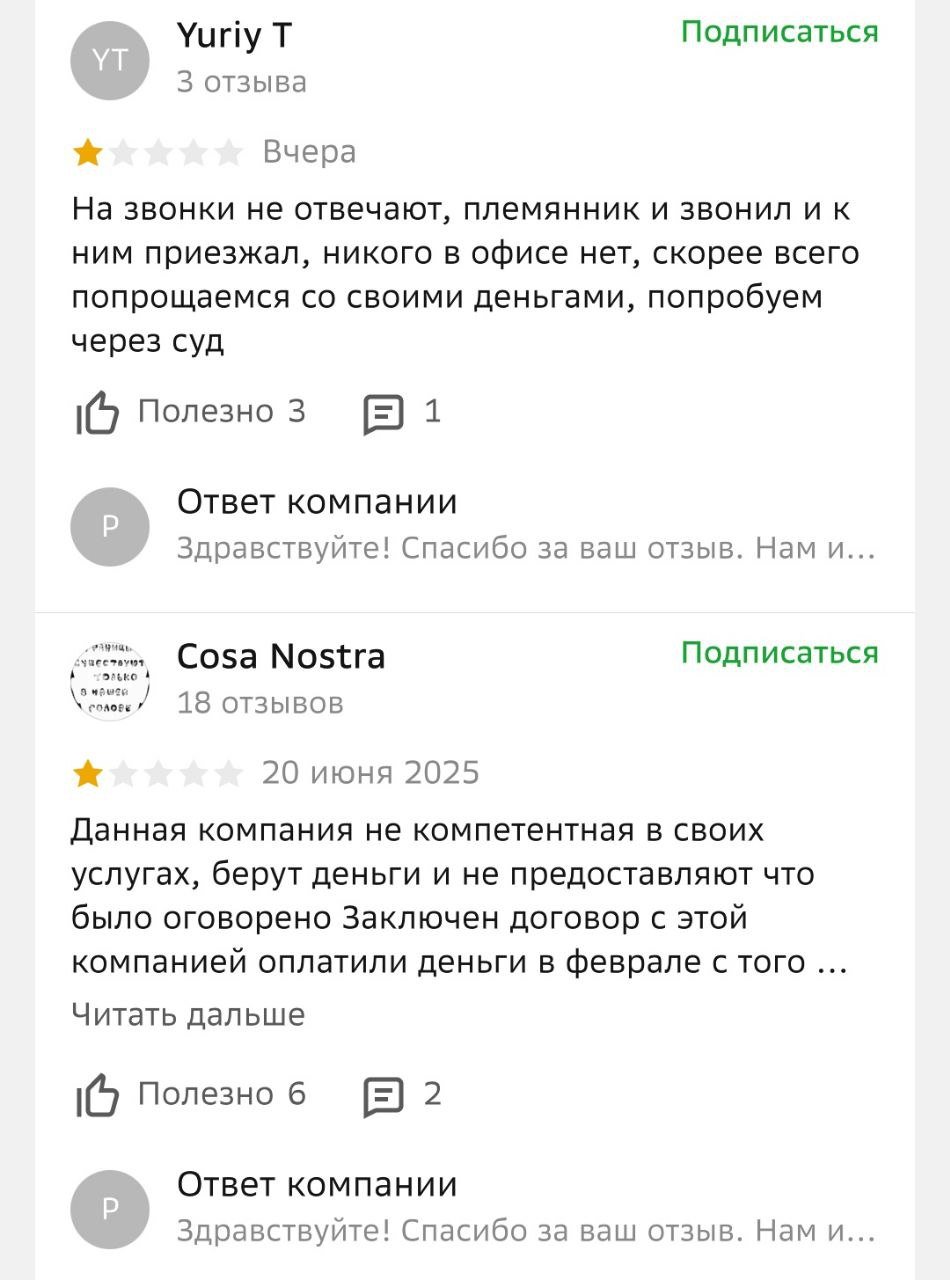 Орхан — не единственный пострадавший. Под последней публикацией в инстаграм-аккаунте десятки человек писали негативные отзывы. Телефон для связи, размещённый в открытом доступе, оказался заблокирован. Номера юристов, которых прикрепляли к каждому клиенту, «временно перестали принимать звонки». Публикацию удалили. Но люди пошли дальше и закидали компанию плохими отзывами в 2GIS.
