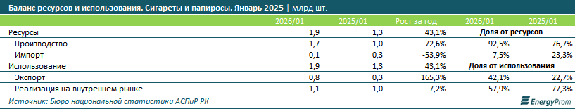 В январе 2026 года рынок почти полностью обеспечили за счёт Казахстанского производства. Доля составила 92,5 % против 76,7 % годом ранее. Импорт сократился более чем вдвое — до 142 млн штук.