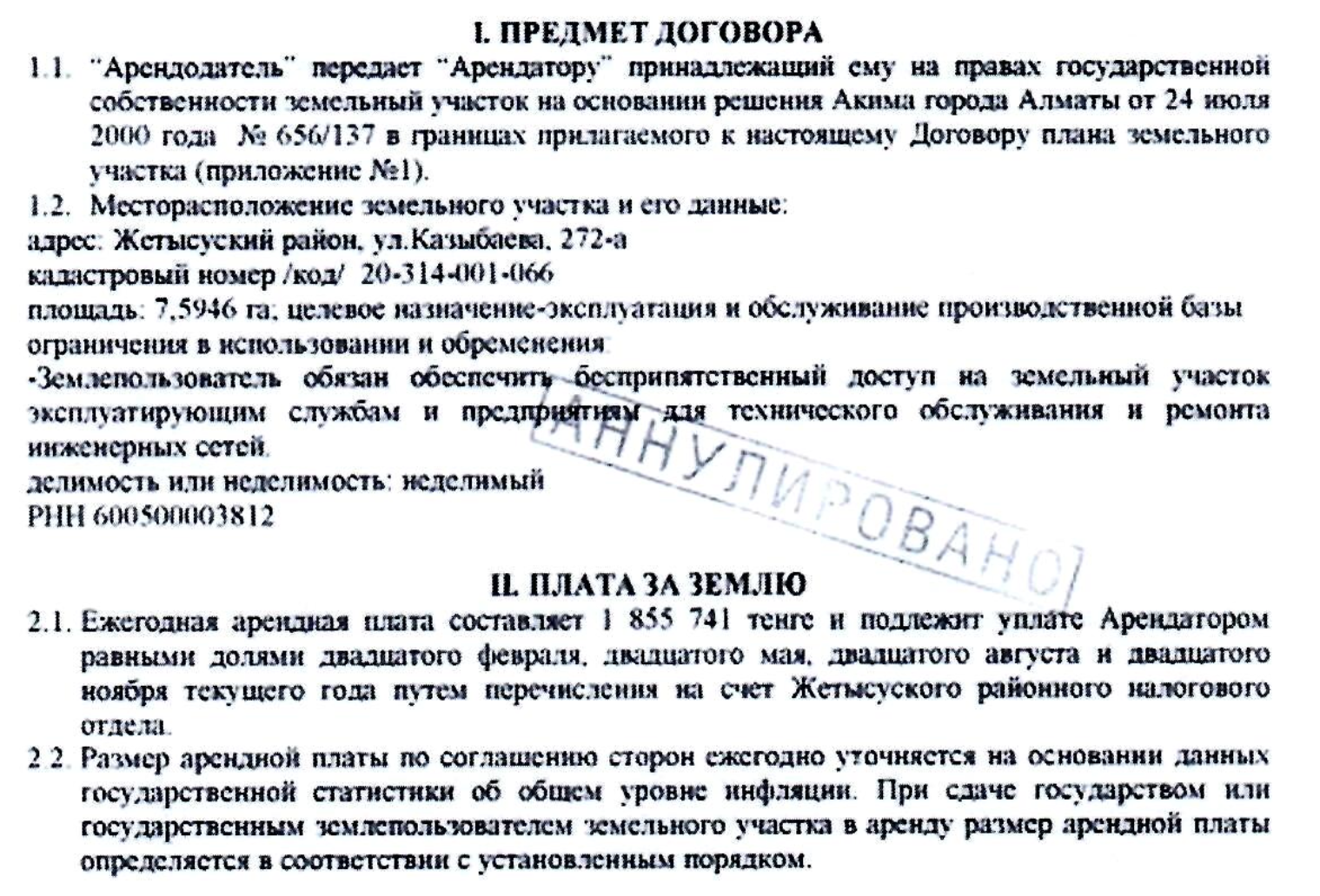 В 2000 году АО «Серт» берёт у акимата этот участок в аренду всего за 1,8 млн тенге в год (!). Договор действовал до сентября 2003 года, а затем Ермегияев выкупил производственную базу. Договор об этом, кстати, подписывал тогдашний аким Алматы Имангали Тасмагамбетов.
