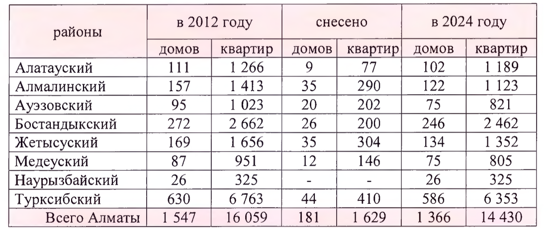 Нынешняя программа реновации продлится до 2030 года, и известно, что это не первая попытка. Что-то похожее уже делали в период с 2012 по 2015 год при акиме Ахметжане Есимове. Тогда снесли 708 ветхих домов.