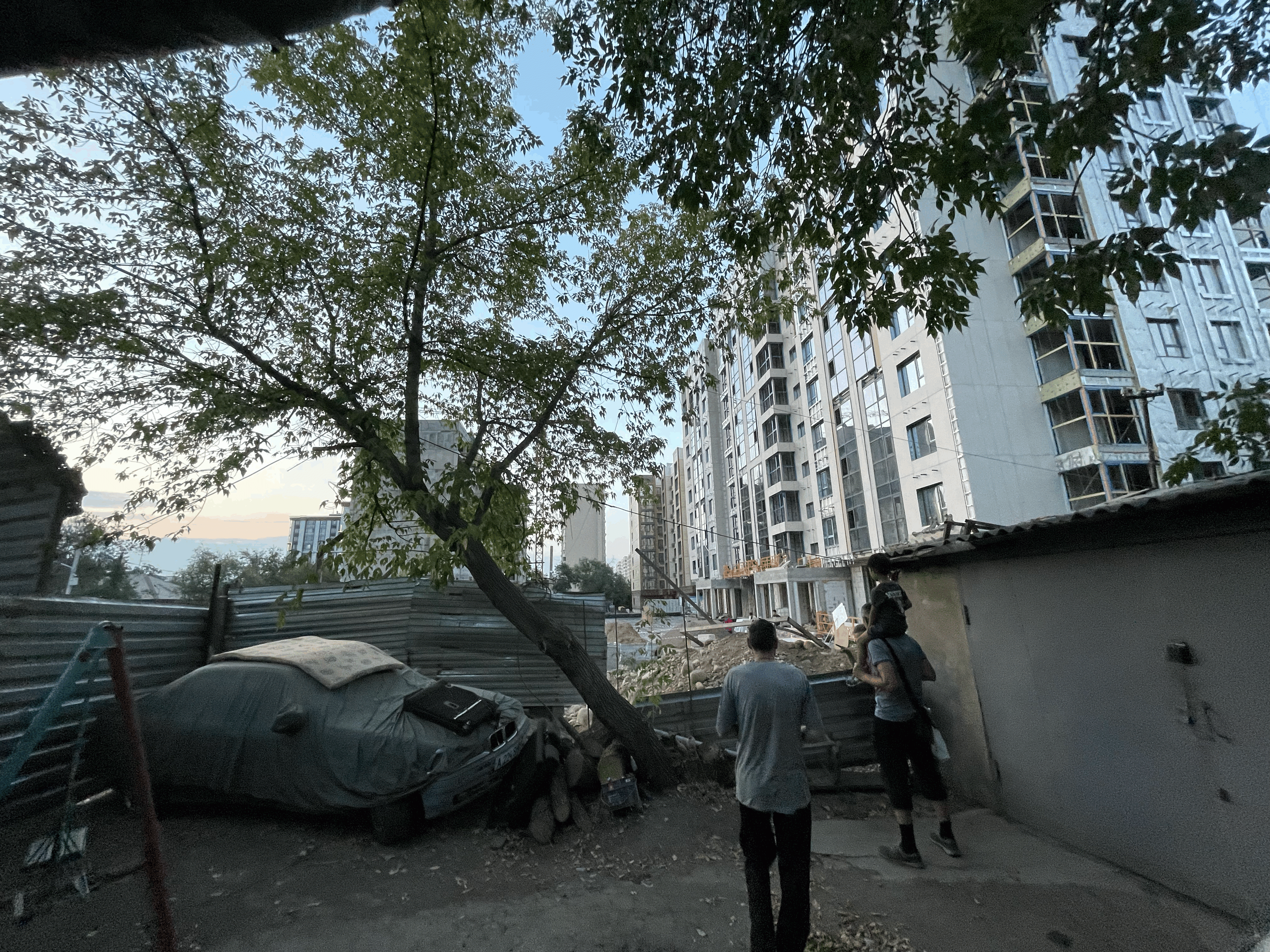 «Компания ВЕК заявила, что не обязана работать по программе реновации, потому что получила участок не через неё, а просто подав заявку в акимат. Акимат, в свою очередь, не учёл, что эта земля находится в зоне реновации, и выдал ВЕК участок во временную аренду. Срок аренды истекает в феврале следующего года — то есть через семь месяцев. Несмотря на это, компания уже полностью снесла всё на участке, огородила территорию и начала строительство. Планируется многоквартирный жилой комплекс», объясняет Татьяна.